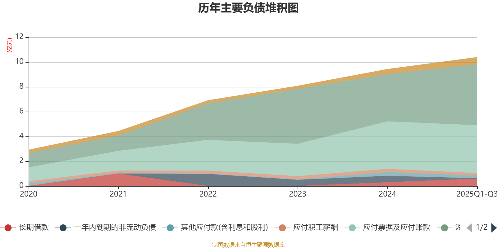 负债重大变化方面,截至2025年三季度末,公司短期借款较上年末增加29.27%,占公司总资产比重上升5.42个百分点;一年内到期的非流动负债较上年末减少95.83%,占公司总资产比重下降2.73个百分点;长期借款较上年末增加99.78%,占公司总资产比重上升1.55个百分点;应交税费较上年末增加96.45%,占公司总资产比重上升0.48个百分点。