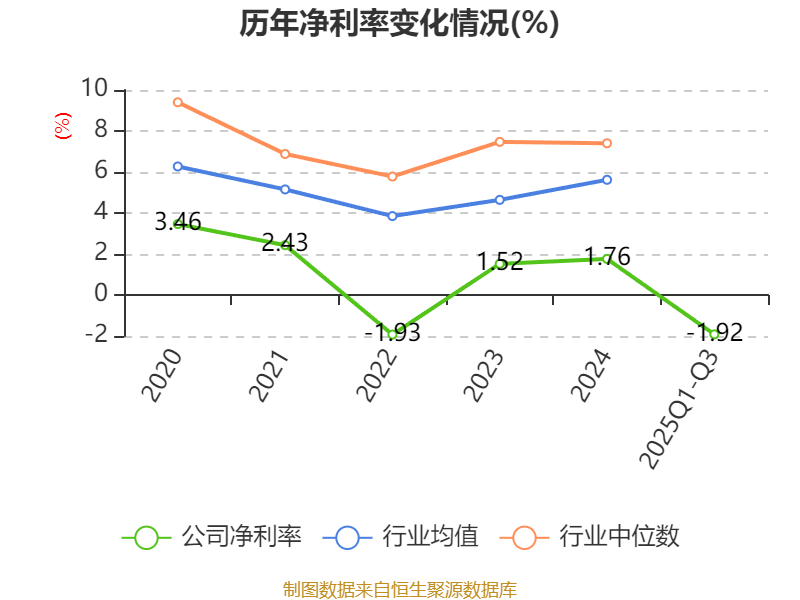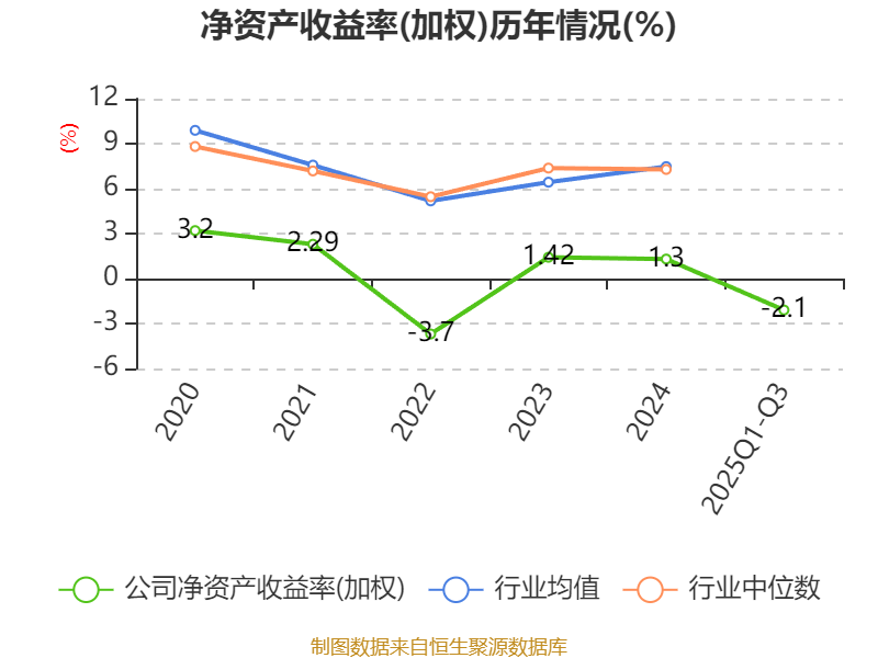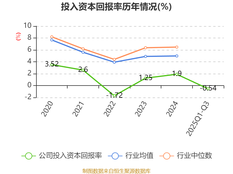 盈利能力方面, 2025年前三季度公司加权平均净资产收益率为-2.1%,同比下降3.21个百分点。公司2025年前三季度投入资本回报率为-0.54%,较上年同期下降1.99个百分点。