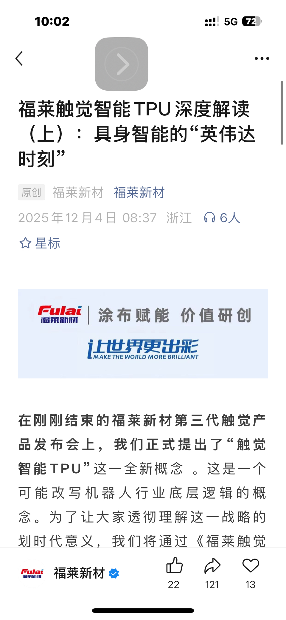 福莱触觉智能TPU深度解读(上):具身智能的“英伟达时刻”原创福莱新材福莱新材2