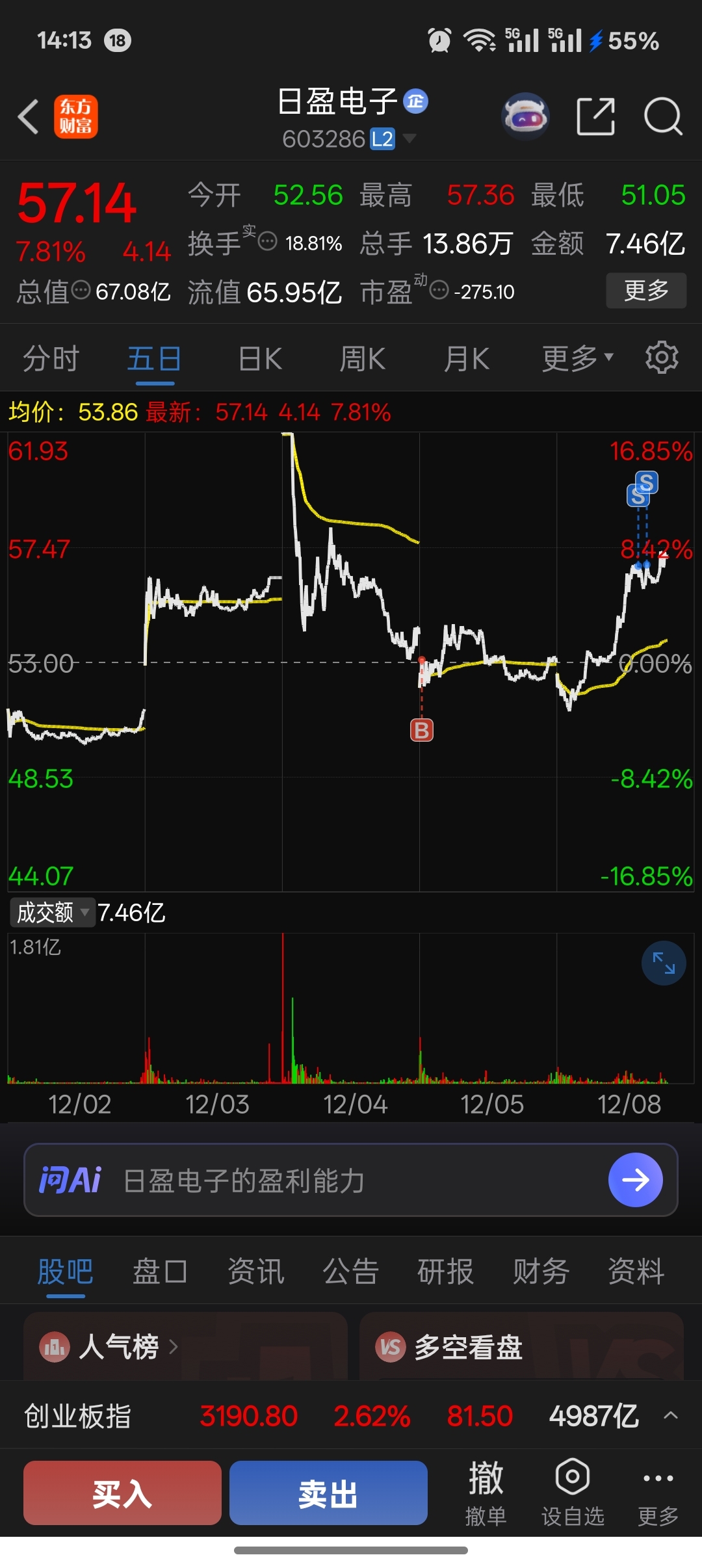 $日盈电子(SH603286)$ 早上。差一点割肉。。。。