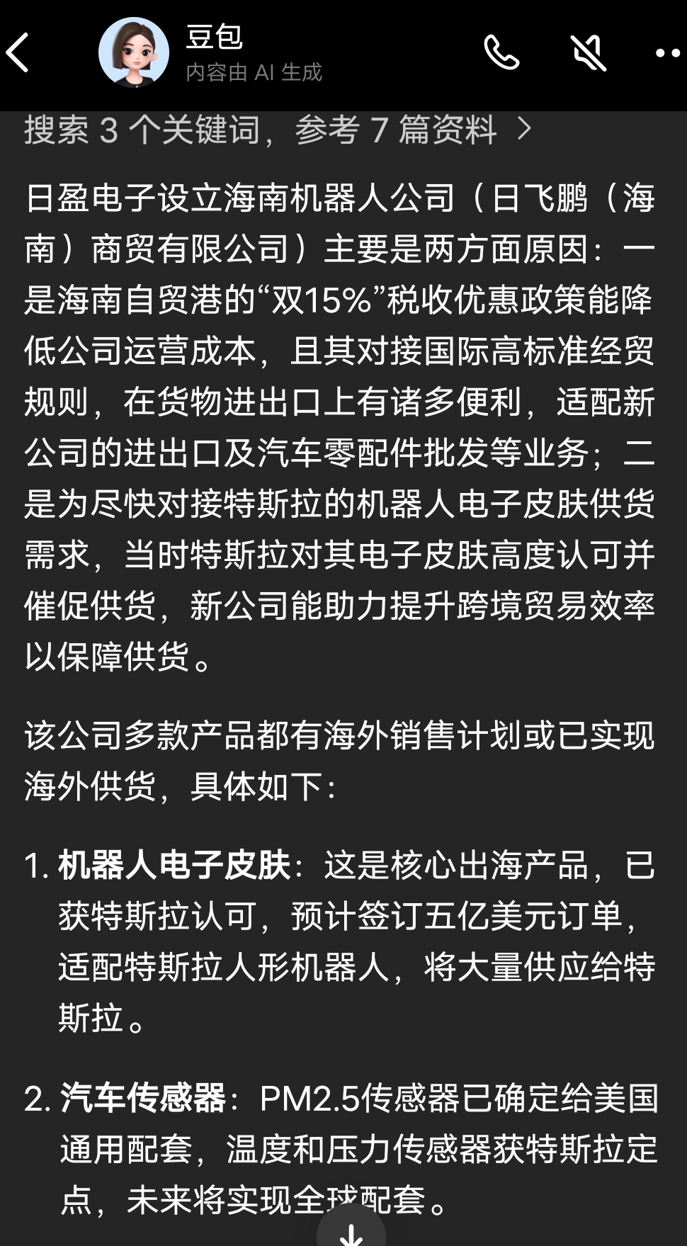 日盈电子为什么设立新公司,因为要卖机器人电子皮肤给特斯拉,本周就会出消息