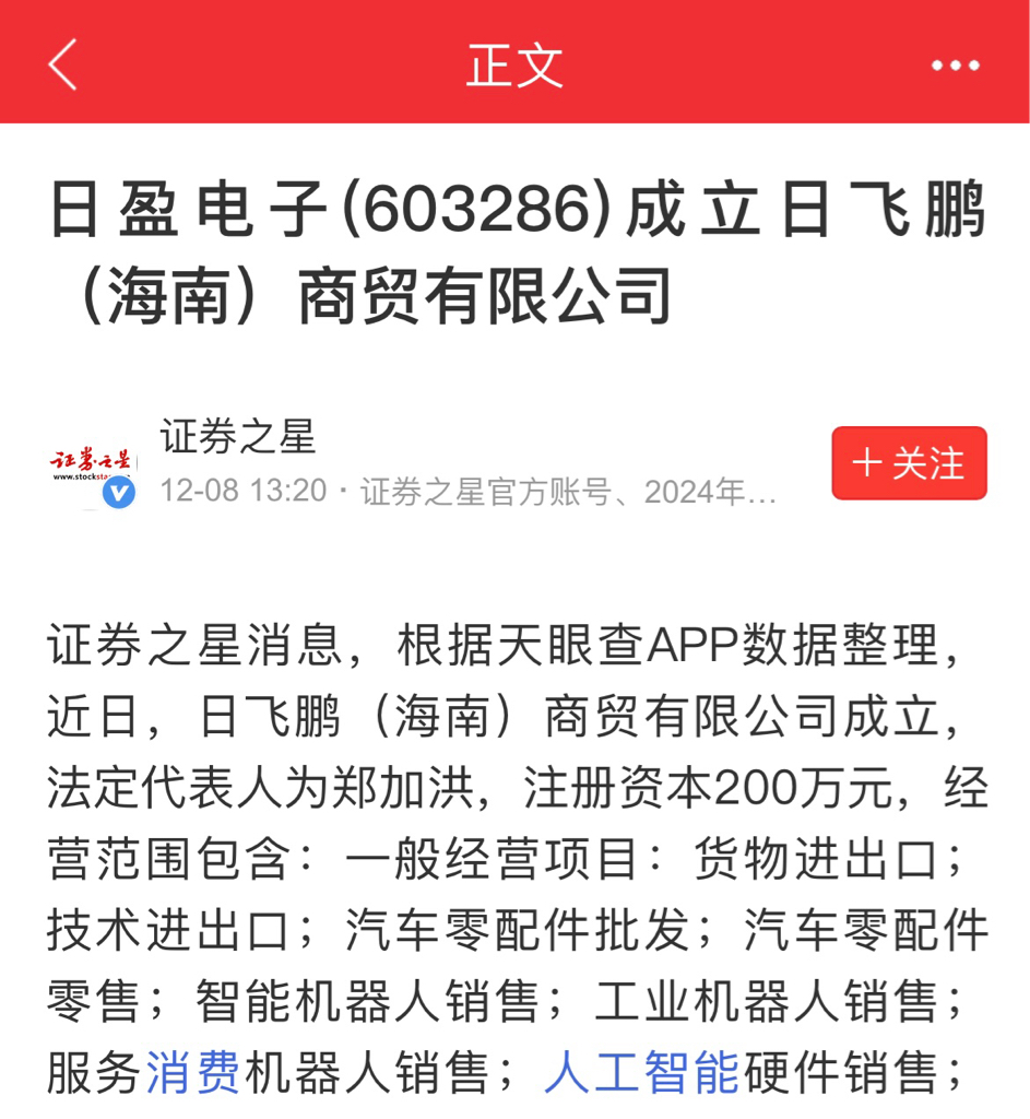 $日盈电子(SH603286)$ 海南 无人驾驶 人型机器人 第一股