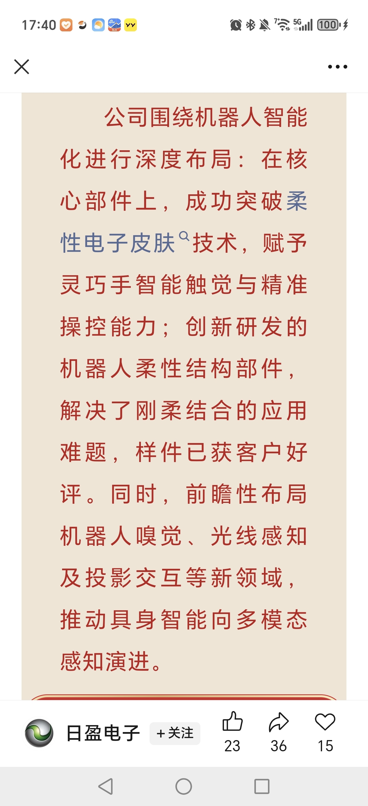 确实厉害!日盈电子公司围绕机器人智能化进行深度布局:在核心部件上,成功突破柔性电