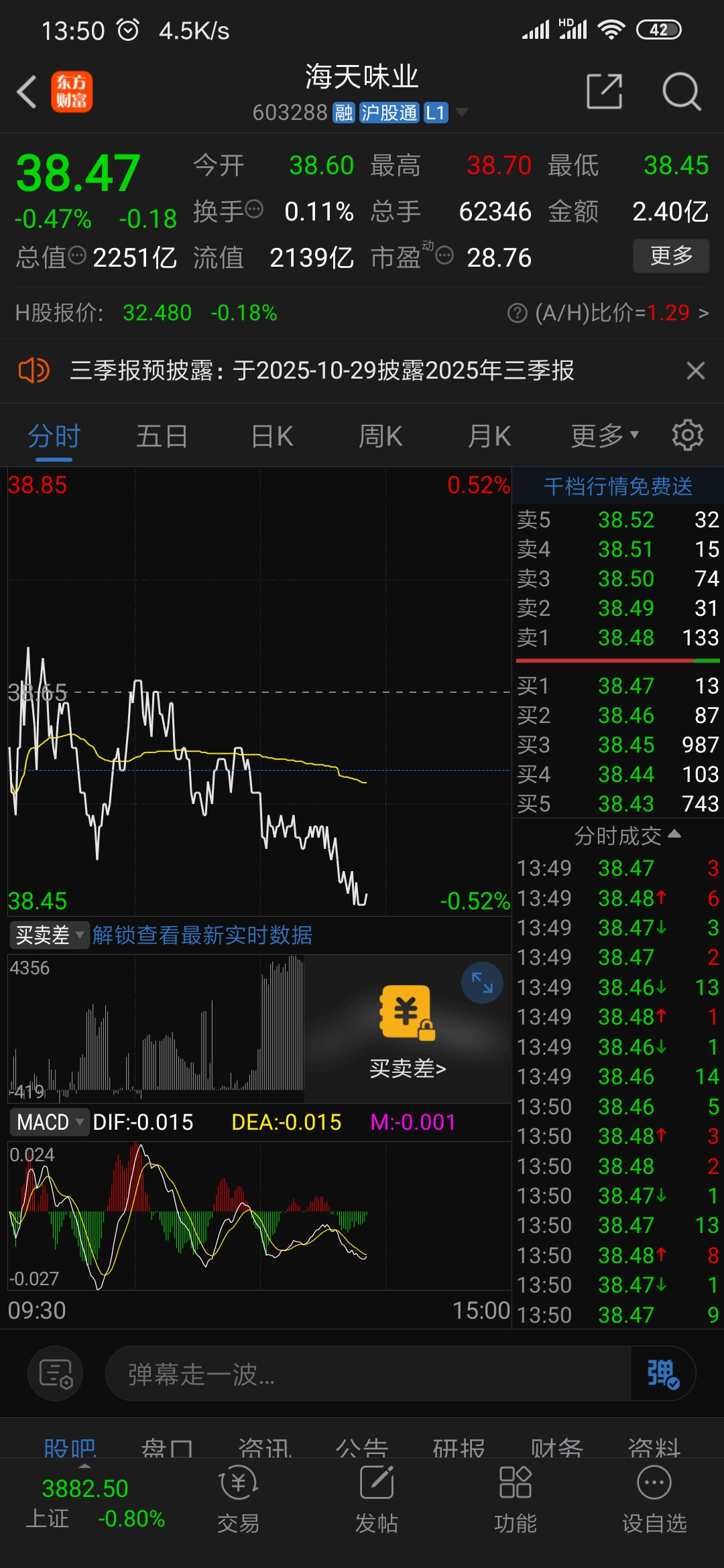 $海天味业(SH603288)$ 赚七千多没有卖,现在跌破成本线了,555~