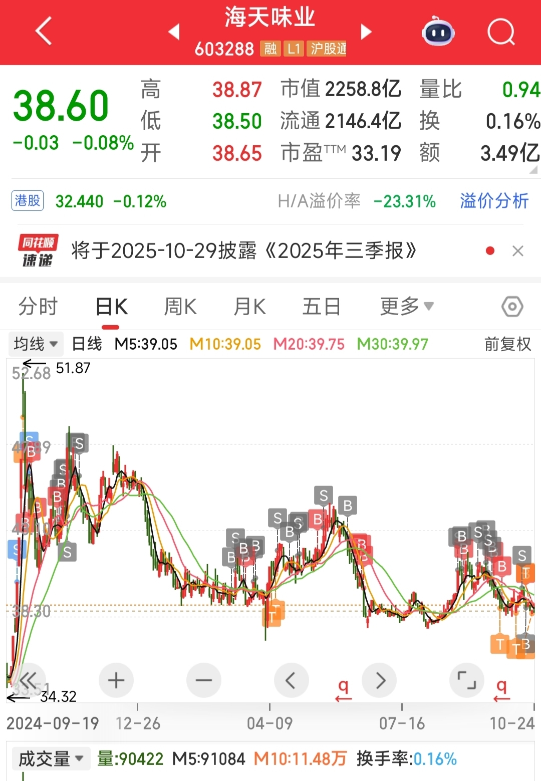 $海天味业(SH603288)$ 虽然一路操作海天都是赚钱,但是这种走势能赚也是蝇头小利,真希望海天能翻转趋势大涨,这样子大家都能赚钱