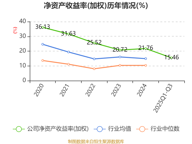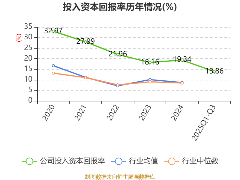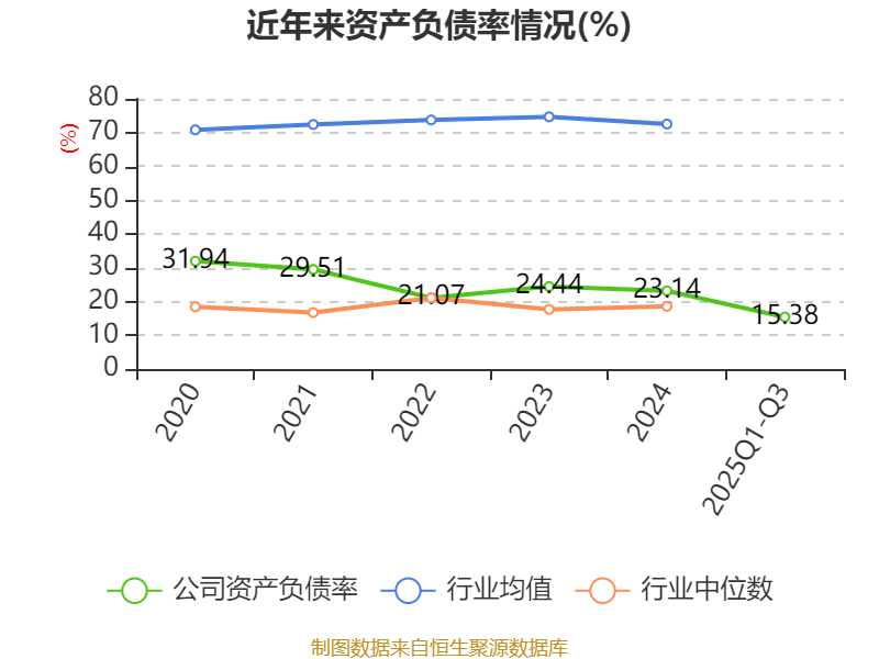 盈利能力方面, 2025年前三季度公司加权平均净资产收益率为15.46%,同比下降1.22个百分点。公司2025年前三季度投入资本回报率为13.86%,较上年同期下降1.32个百分点。