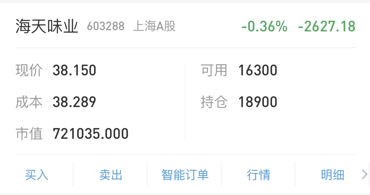 $海天味业(SH603288)$ 拿了两个月了,从盈利3w到亏损