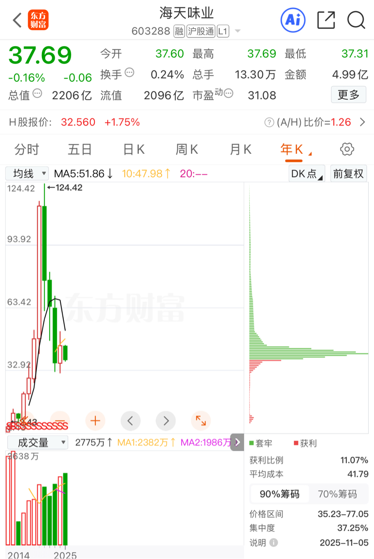 $海天味业(SH603288)$ 看年线真的有点怕了,会不会跌破30