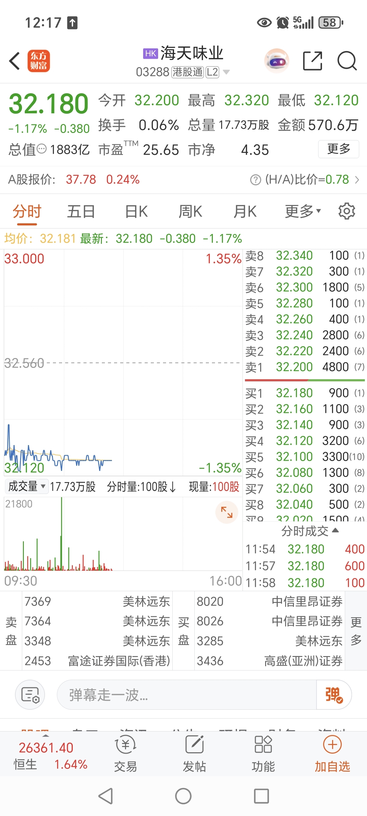 $海天味业(SH603288)$ 海天港股一上午成交额只有几百万港元,已经沦为无人问津的仙股了!