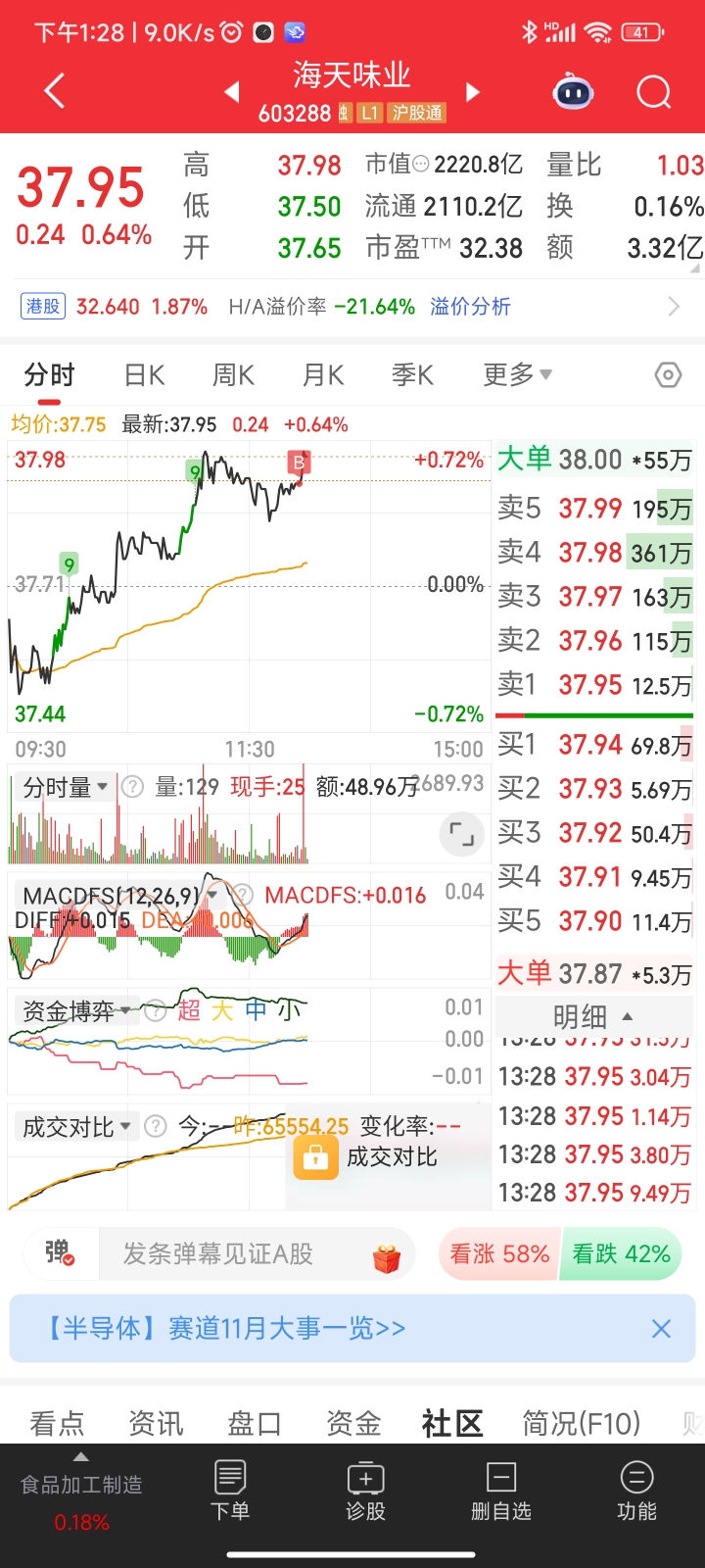 $海天味业(SH603288)$ 追高买入,赌一波年前的高低切,消费在低位,看下有没有机会