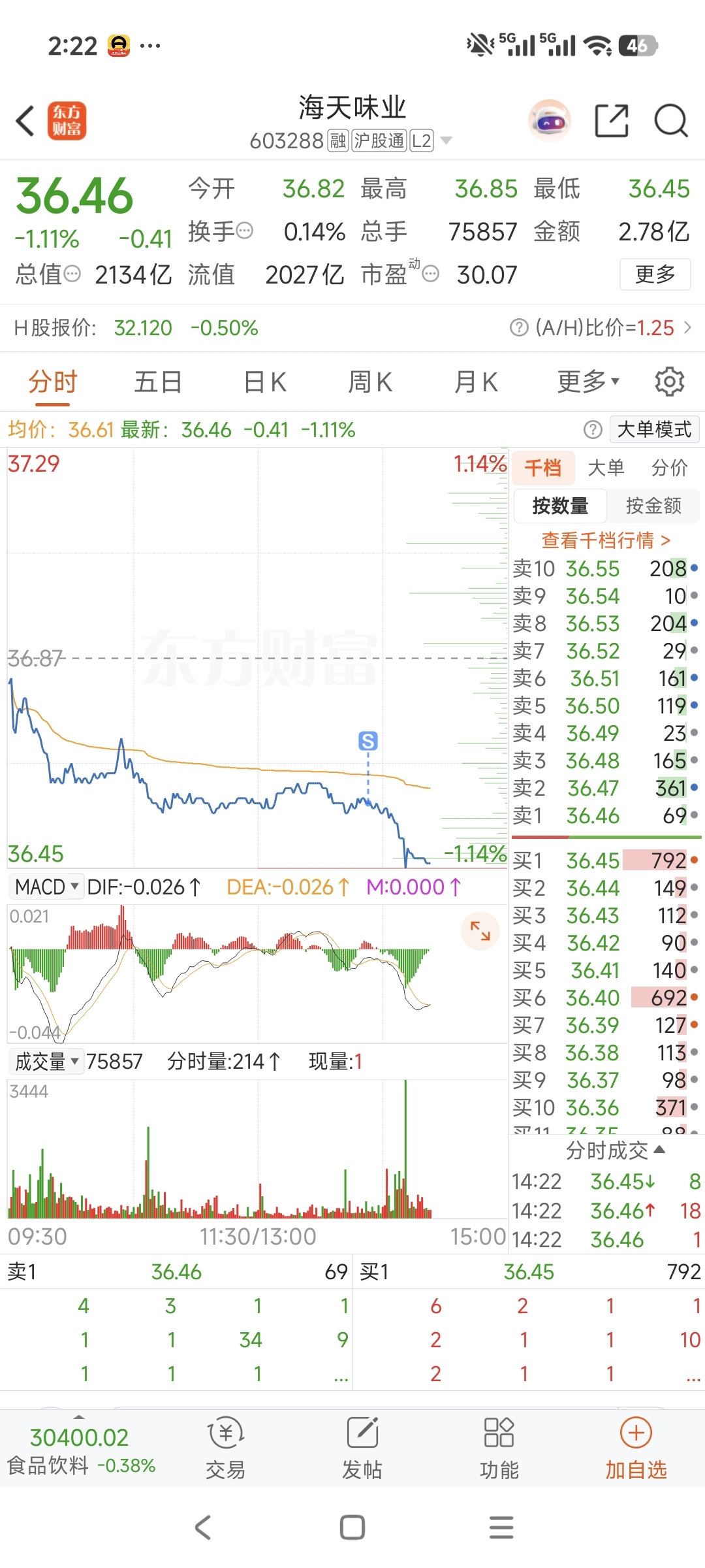 $海天味业(SH603288)$ 顶不住了,30再来吧
