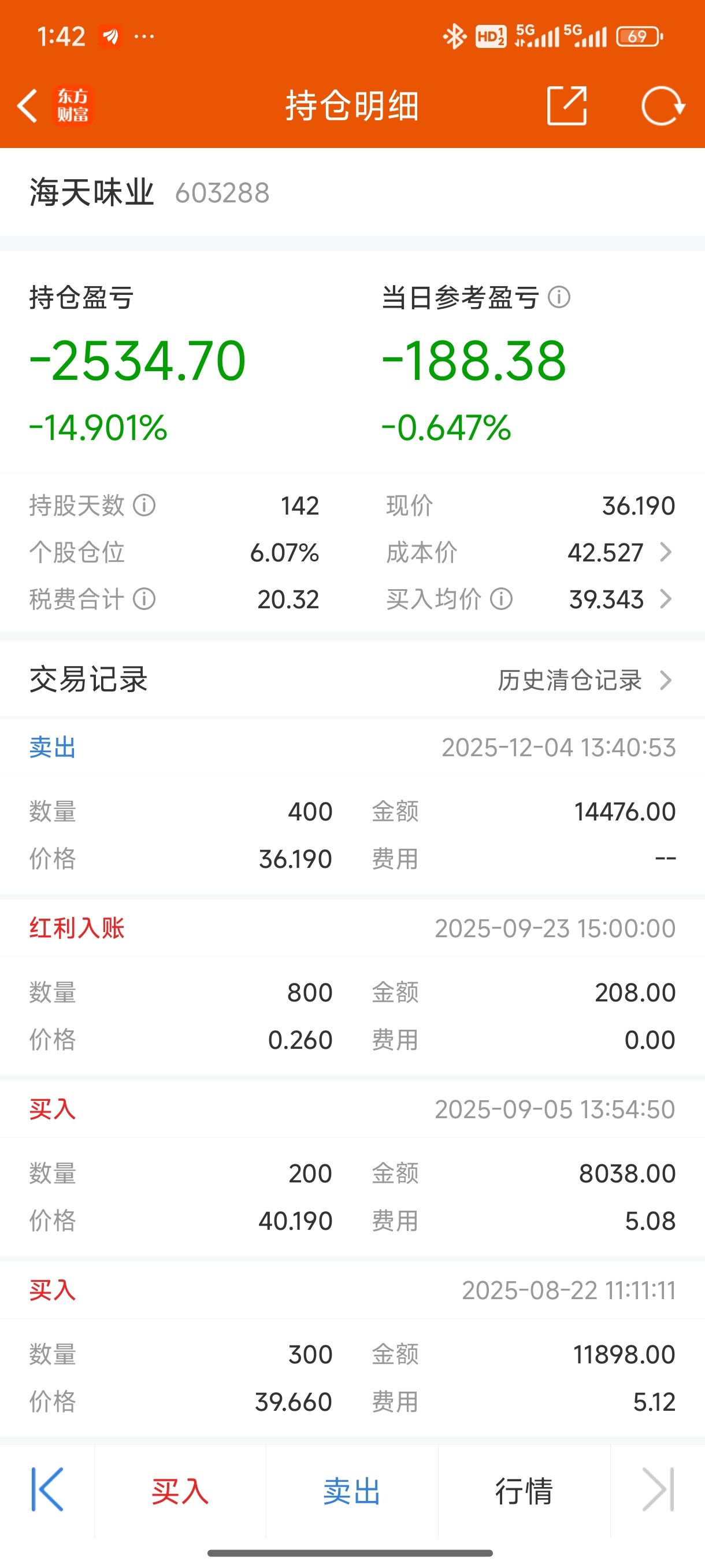 $海天味业(SH603288)$ 错了就是错了,不犟嘴,止损一半,如果后面涨涨到这个位置,我还买进去,;如果继续跌,肯定也不加仓了