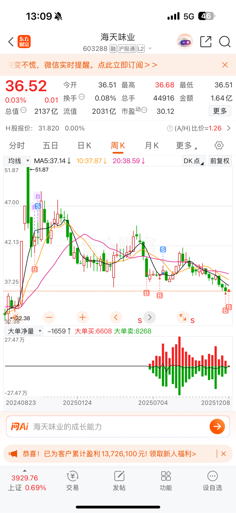 $海天味业(SH603288)$ 我胡汉三又回来了