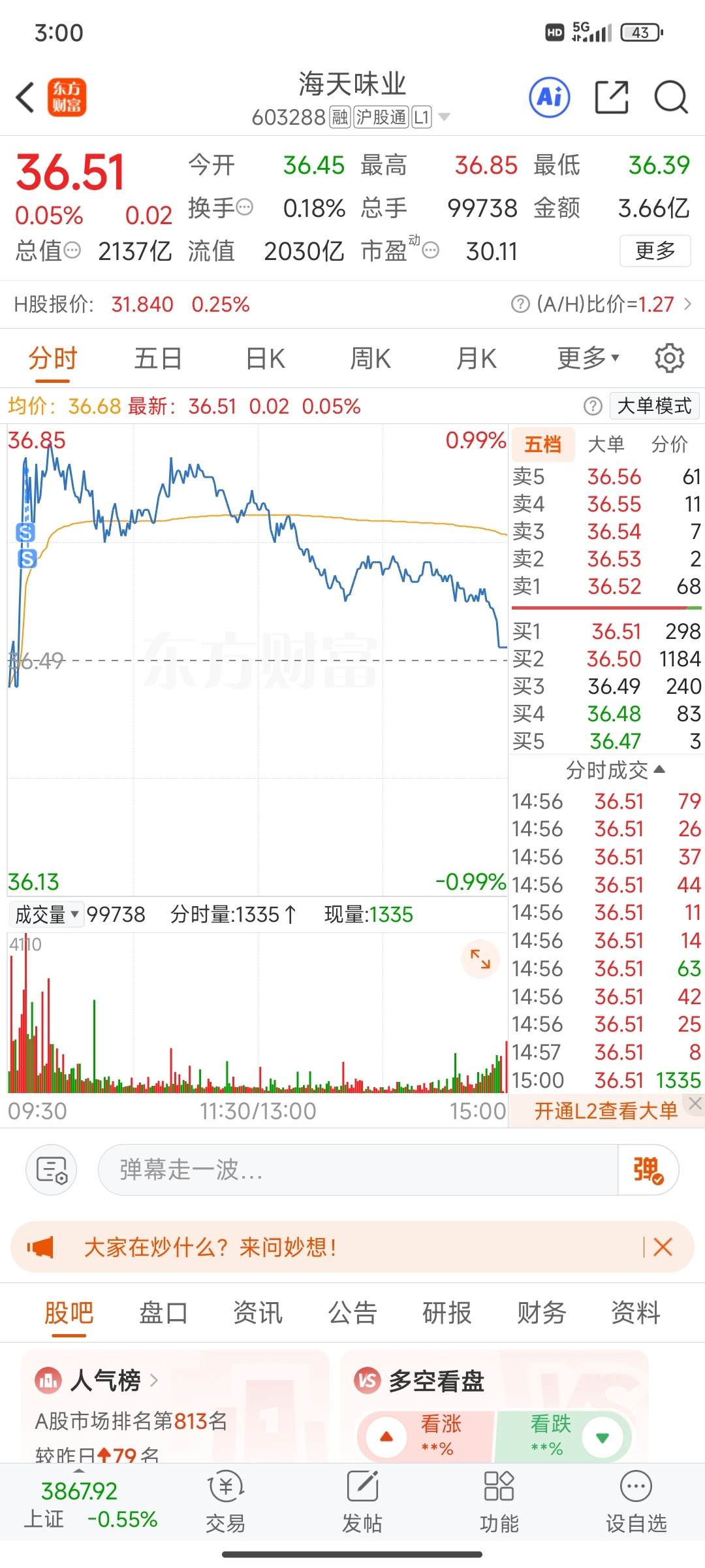 $海天味业(SH603288)$ 急涨慢跌是出货。