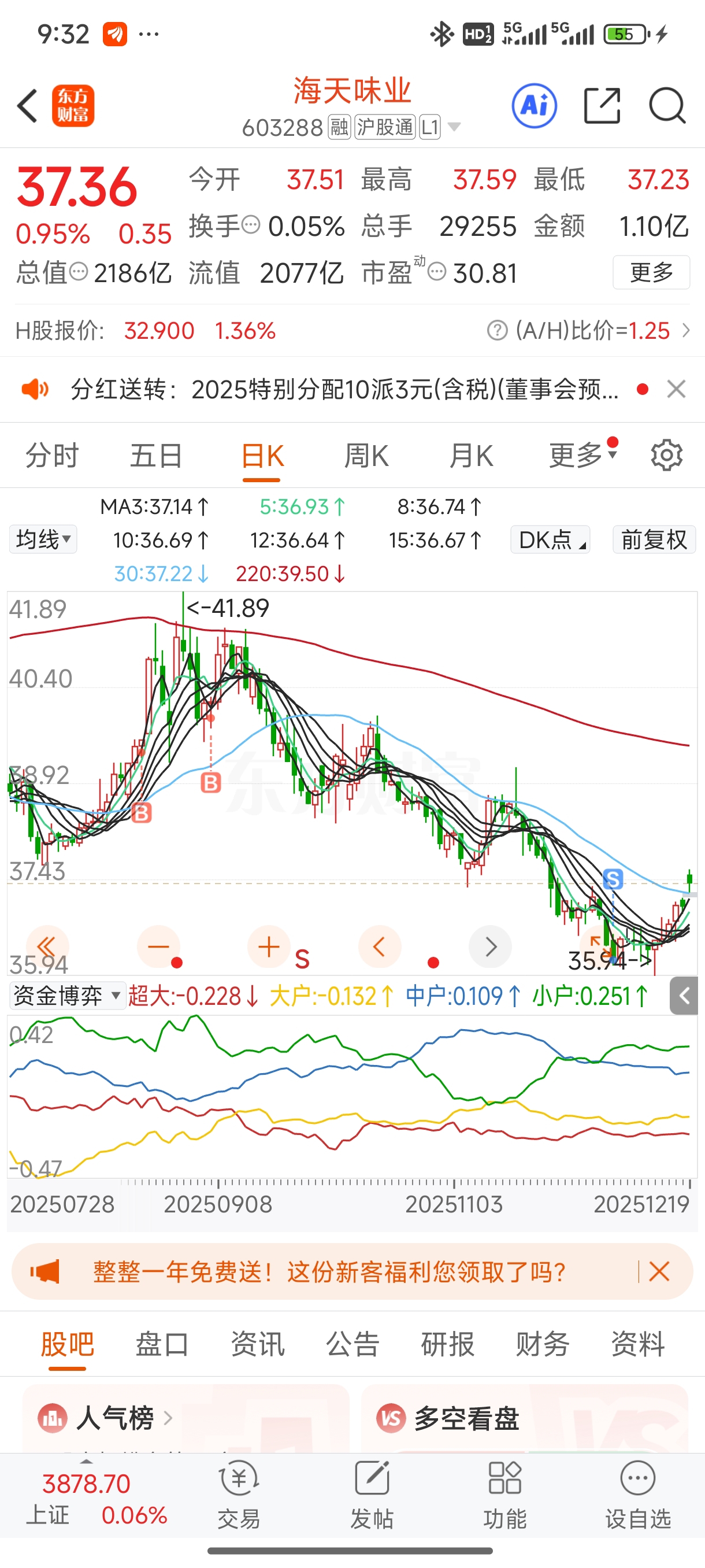 $海天味业(SH603288)$ 你们都应该感谢我,打我卖出去后就止跌了