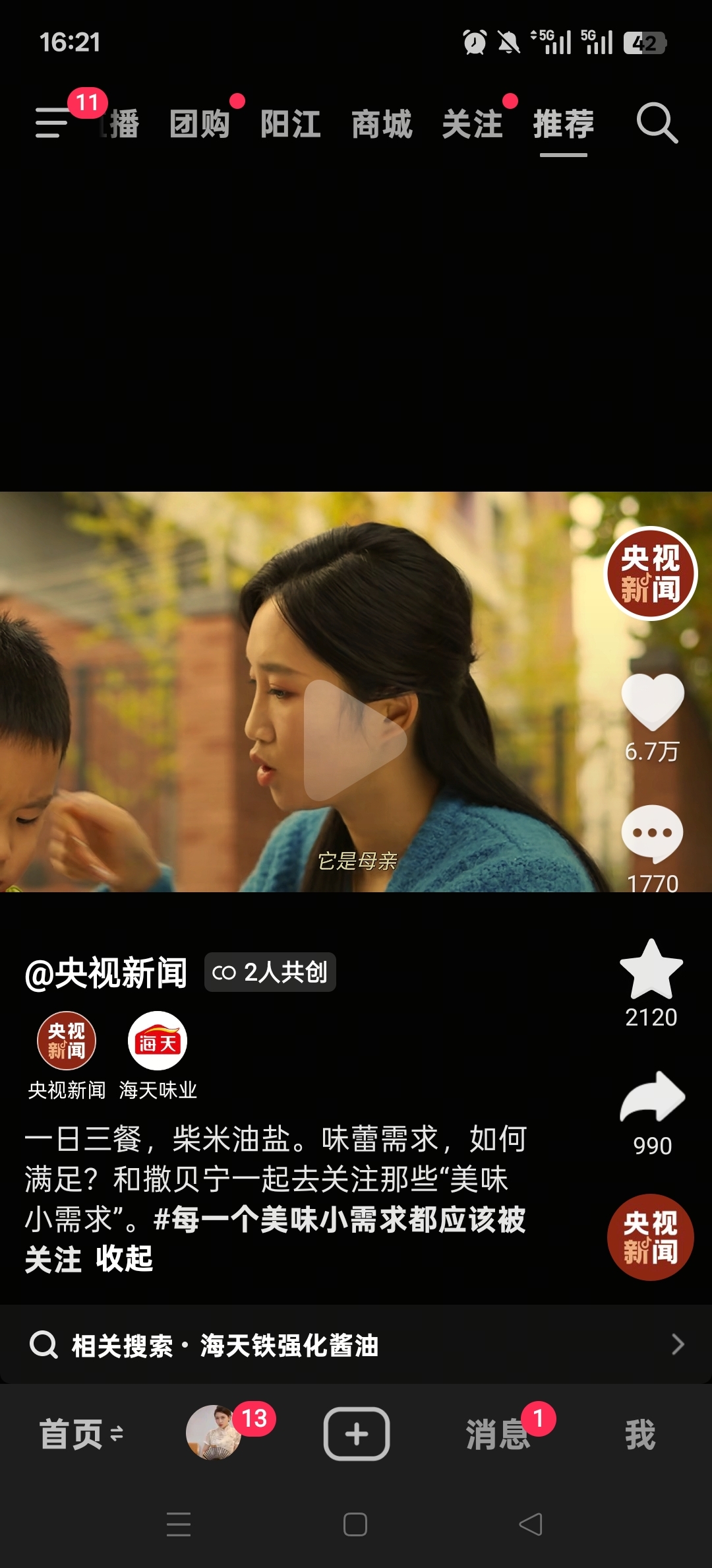 $海天味业(SH603288)$ 央视都帮你打广告了,你还长不了