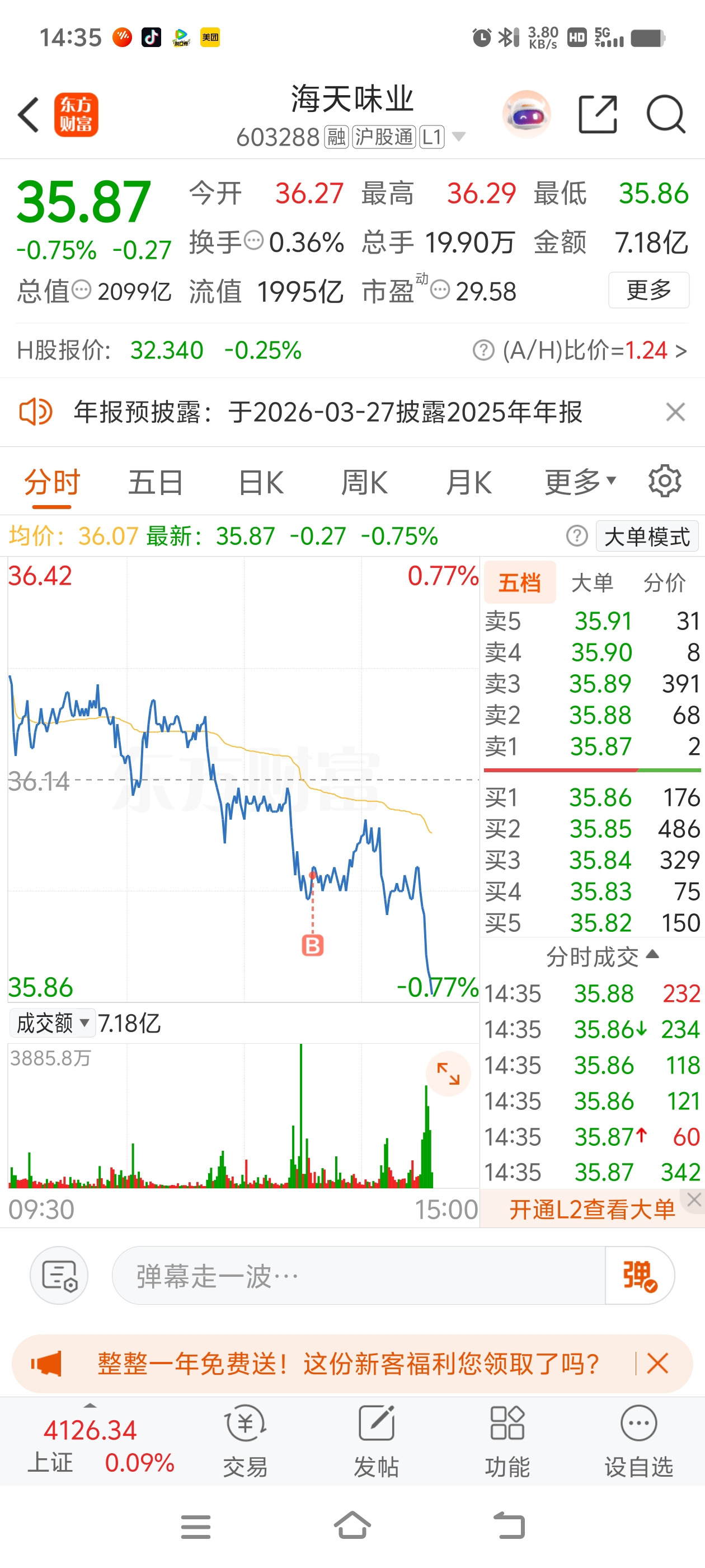 $海天味业(SH603288)$ 呵呵,36都还能跌