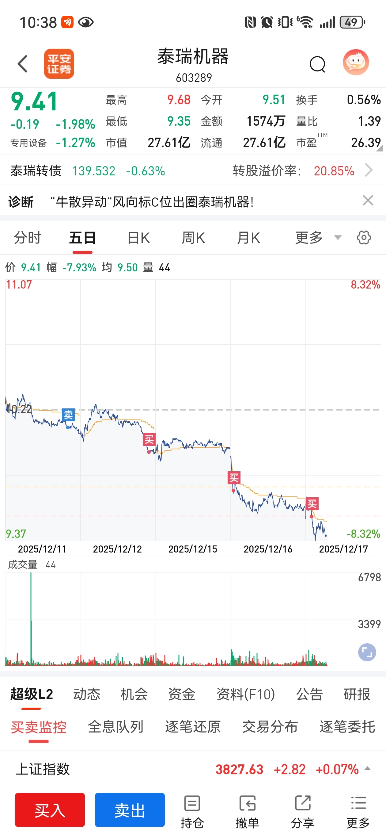 $泰瑞机器(SH603289)$ 我又买了,明天再跌就再买