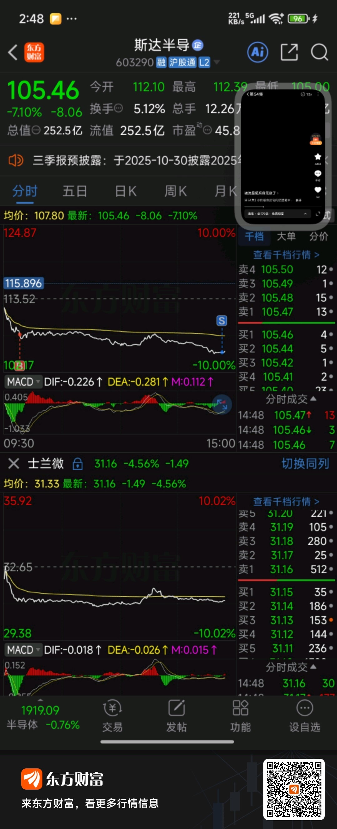 $斯达半导(SH603290)$ 叫我大怨种吧!肉没吃到,昨天买的,加上今天T失败,等于吃了一个跌停