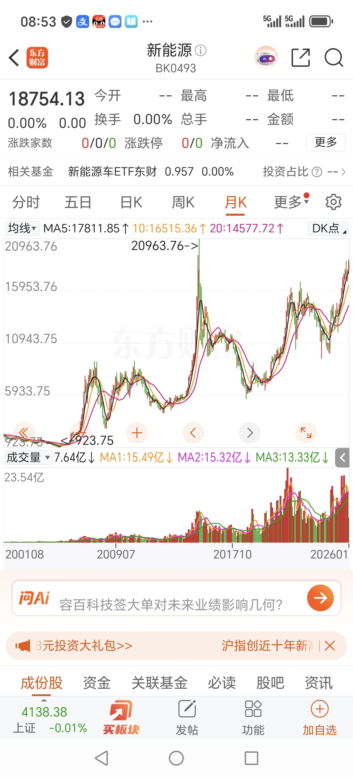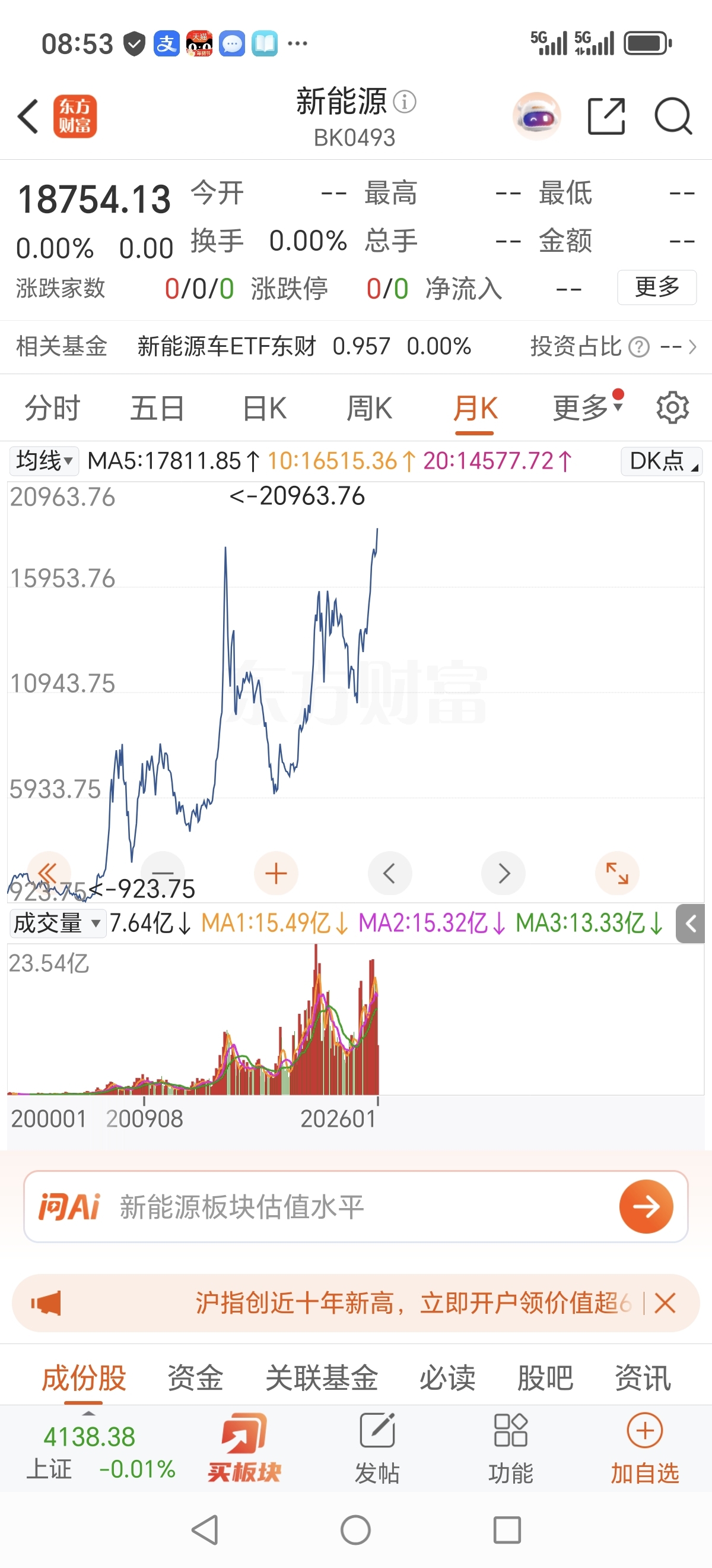 中国新能源指数从923点飙升至18700,涨幅2000%,中国光伏涨幅100%,