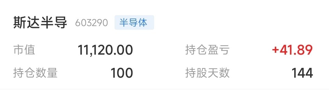 $斯达半导(SH603290)$ 感谢勾庄,第144天让我回本