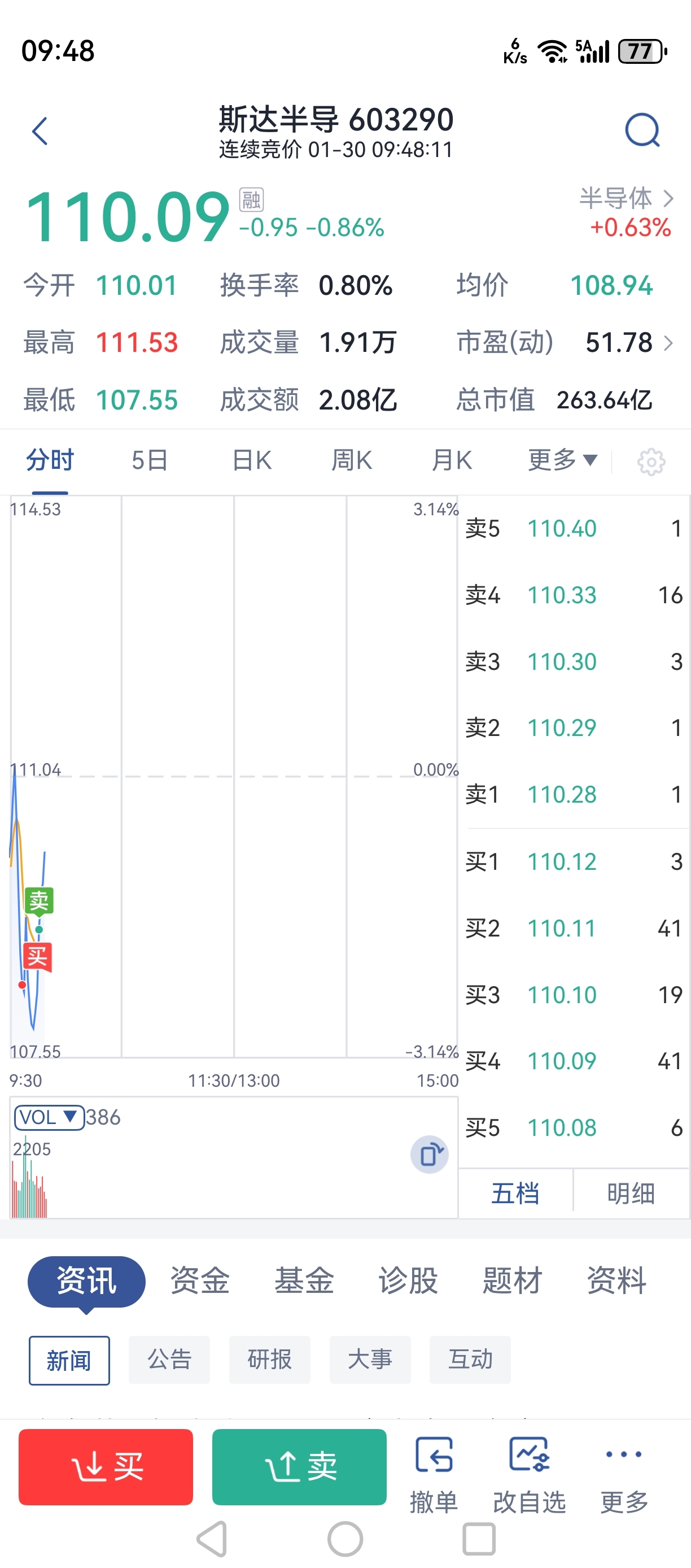 $斯达半导(SH603290)$ 早上挂单早了,看见黄线跟着下来,反弹没力,保守做T降低六角钱成本,坚定看好它才会这样小T