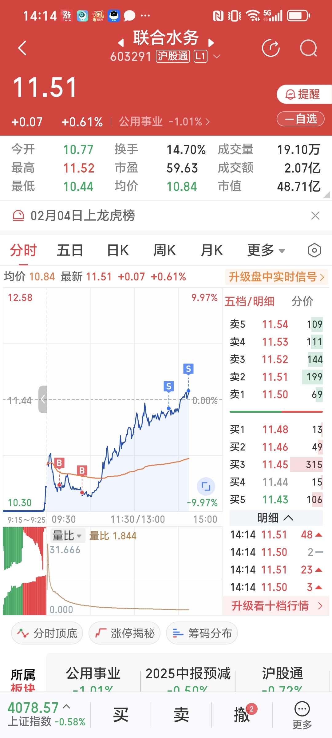 $联合水务(SH603291)$ 算了明天低开再买,还是只留以前的底仓