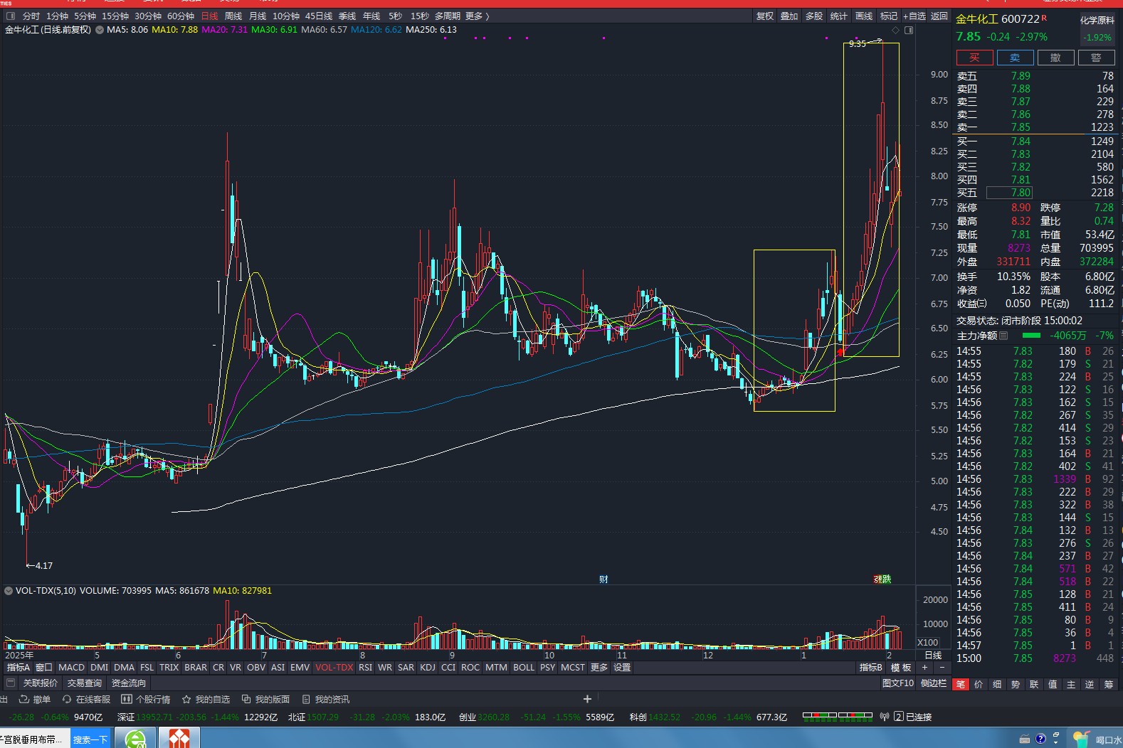 600722股一样的跌法,前面股价上涨得好好的,突然一根放量跌停板大阴线跌破了所有短期均线,结果后面连续10连阳放量涨停板大阳线创9.35元历史新高上涨。