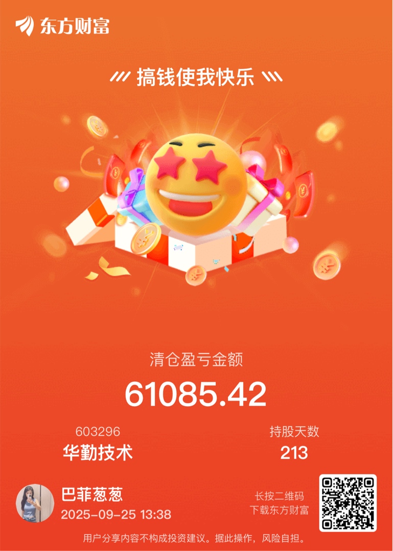 $华勤技术(SH603296)$ 持股213天,一直跌一直加,相比股吧的老哥们,我算坚定了,今天走了。这个股是我在西工大校招中遇到的,回来研究一通,在众多歪瓜裂枣里也算眉清目秀,一直比较看好,走了不是离开,是为了更好的回来,老哥们留下的发财#强势机会# #复盘记录# #炒股日记#