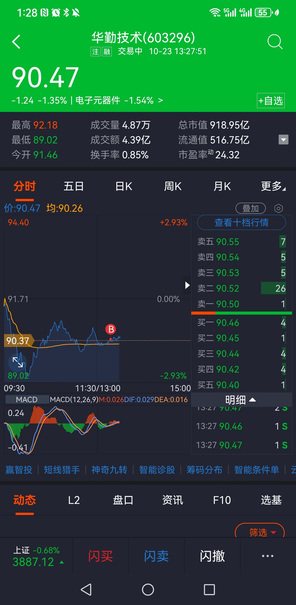 $华勤技术(SH603296)$ 做个60分钟反弹