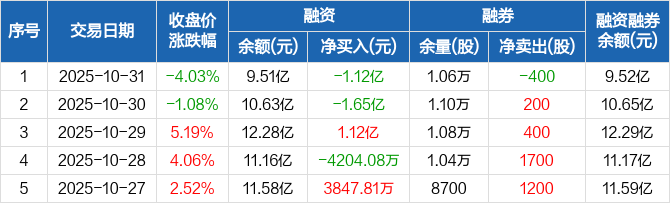 华勤技术:融资净偿还1.12亿元,融资余额9.51亿元(10-31)