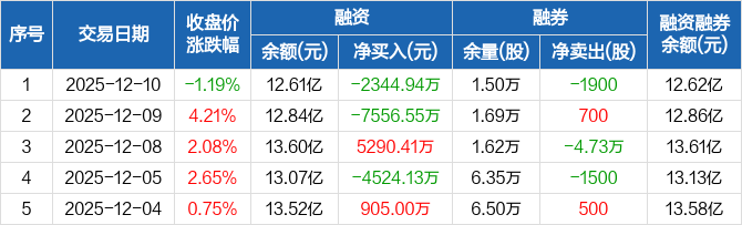 华勤技术:融资净偿还2344.94万元,融资余额12.61亿元(12-10)