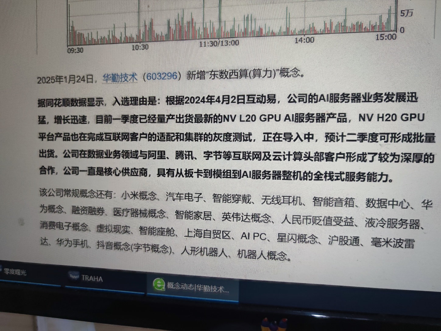 $华勤技术(SH603296)$ 都去添加算力概念股,同花顺有的!!!!!根据2024年4月2日互动易,公司的ai服务器业务发展迅猛,目前一季度已经量产出货最新的NV L20AI服务器产品,公司在数据业务领域与阿里,腾讯,字节等互联网及云计算头部客户形成了深厚的合作,公司一直是核心供应商!