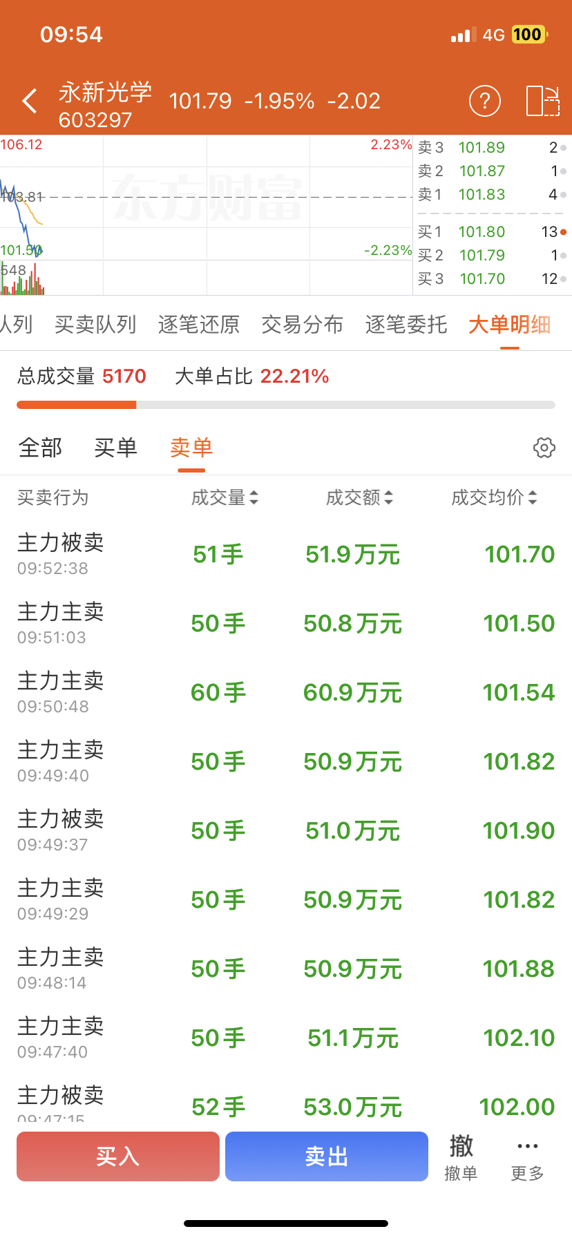 $永新光学(SH603297)$ 天天都是50手50手的一路往下砸。
