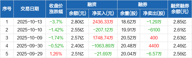 杭叉集团:融资净买入2436.33万元,融资余额2.8亿元(10-13)