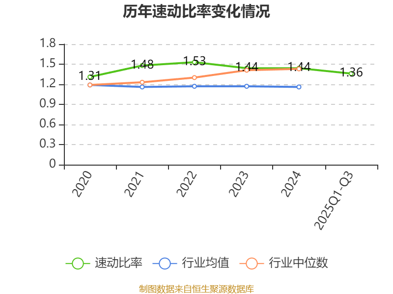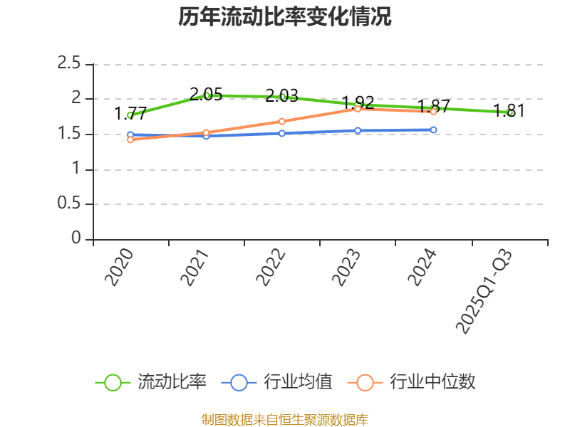 2025年前三季度,公司流动比率为1.81,速动比率为1.36。