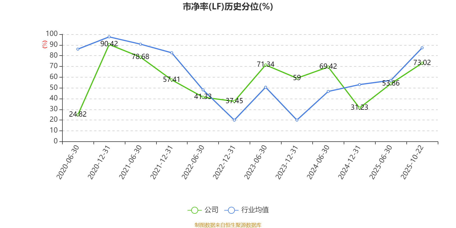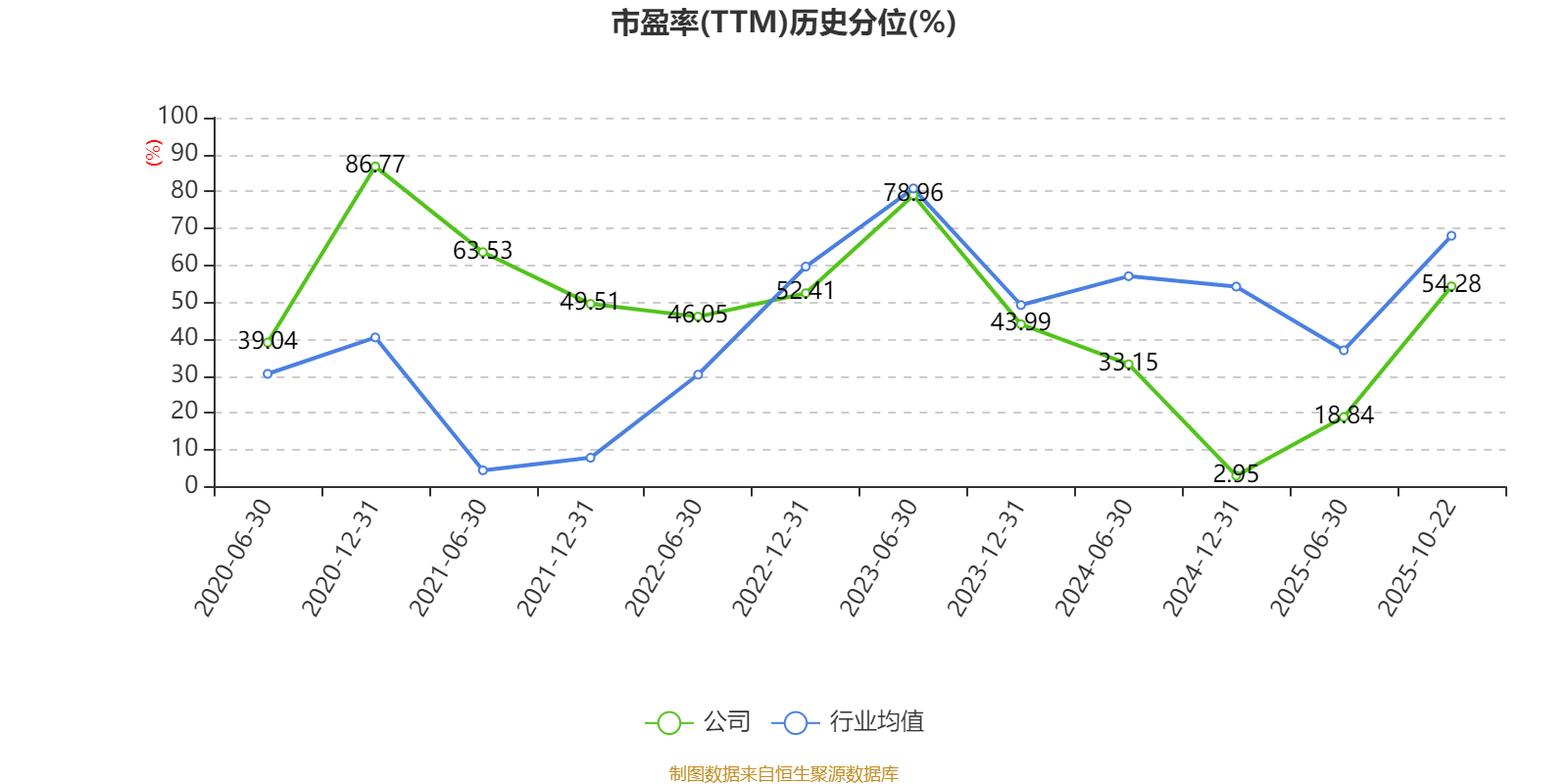 市盈率、市净率为负时,不显示当期分位数,会导致折线图中断。
