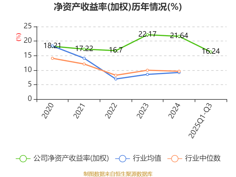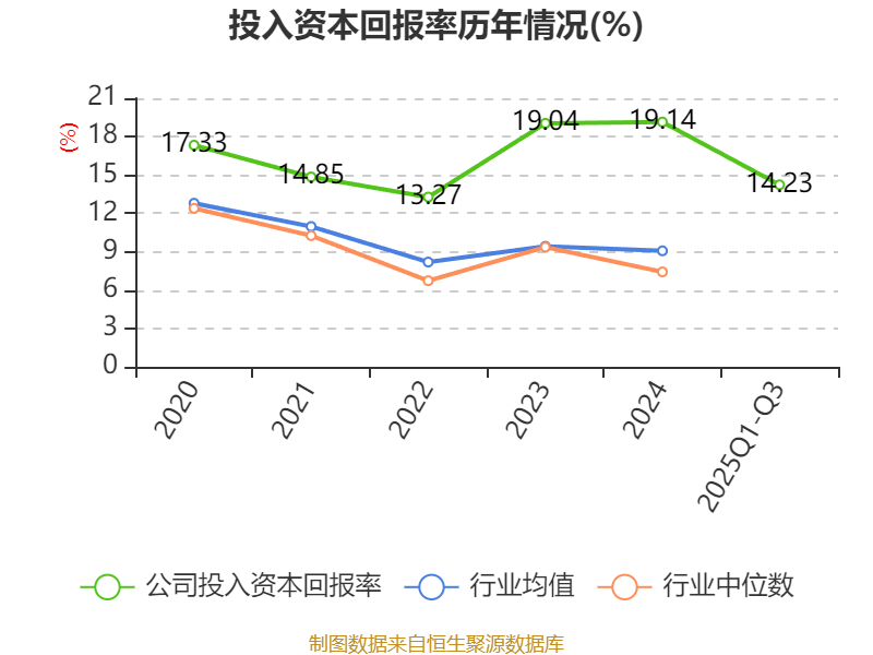 盈利能力方面, 2025年前三季度公司加权平均净资产收益率为16.24%,同比下降1.26个百分点。公司2025年前三季度投入资本回报率为14.23%,较上年同期下降0.95个百分点。