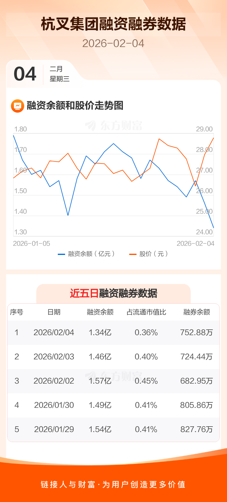 交易所最新数据显示,杭叉集团于2026年2月4日获融资买入1349.51万元,融资偿还2554.42万元,当日融资净偿还1204.91万元。目前,该股融资余额1.34亿,占流通市值比例为0.36%。