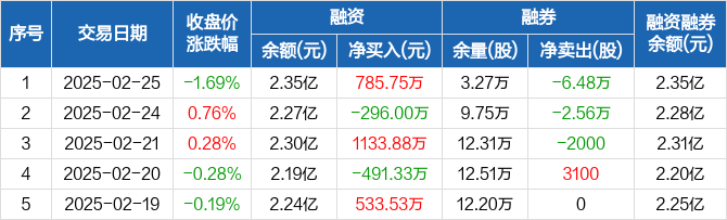 苏盐井神:融资净买入785.75万元,融资余额2.35亿元(02-25)