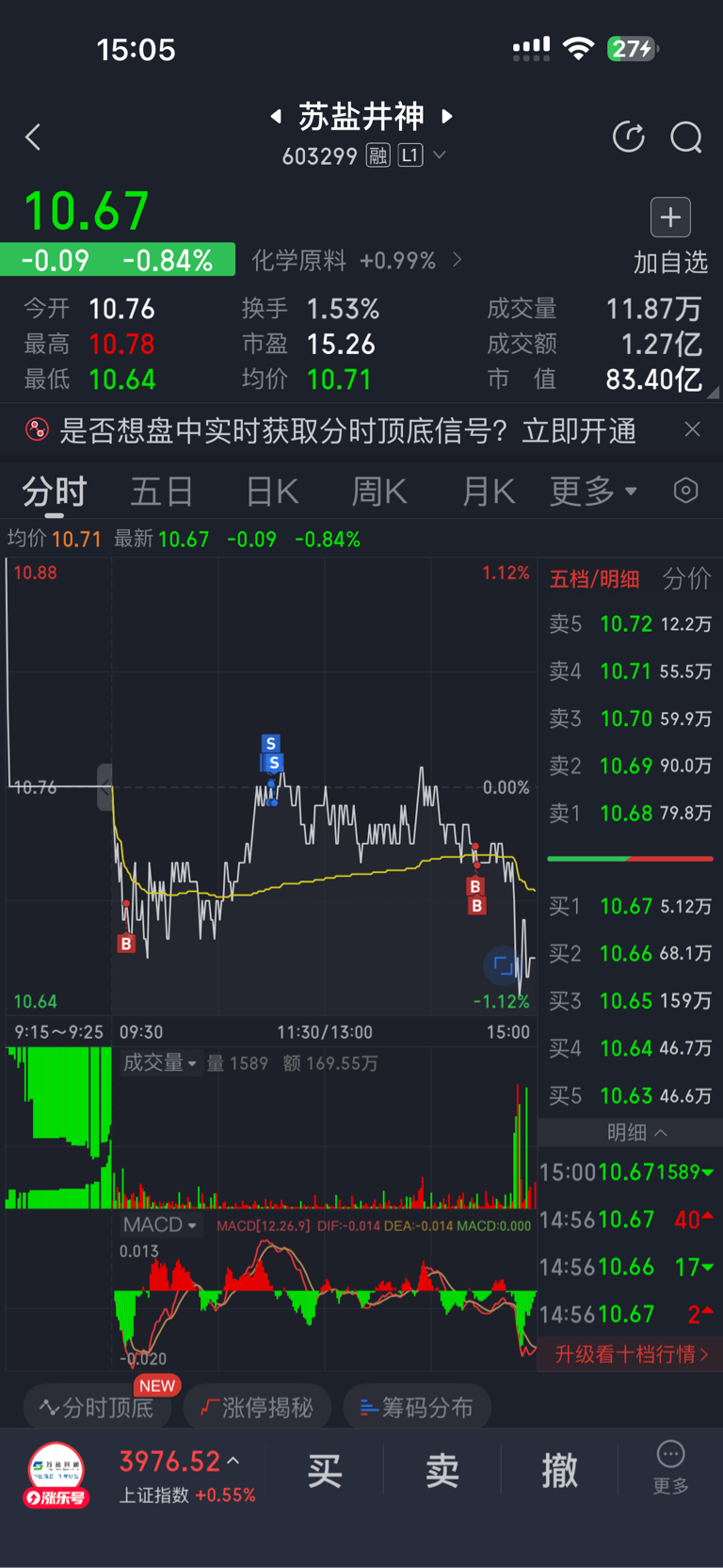 $苏盐井神(SH603299)$ 主力牛x,意想不到,砸尾盘是吧,明天继续