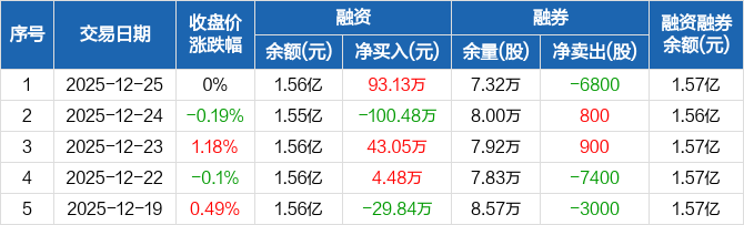 苏盐井神:融资净买入93.13万元,融资余额1.56亿元(12-25)