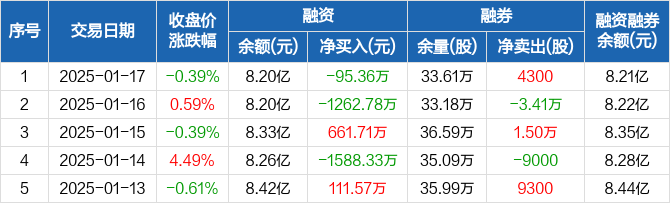 海南华铁:融资净偿还95.36万元,融资余额8.2亿元(01-17)