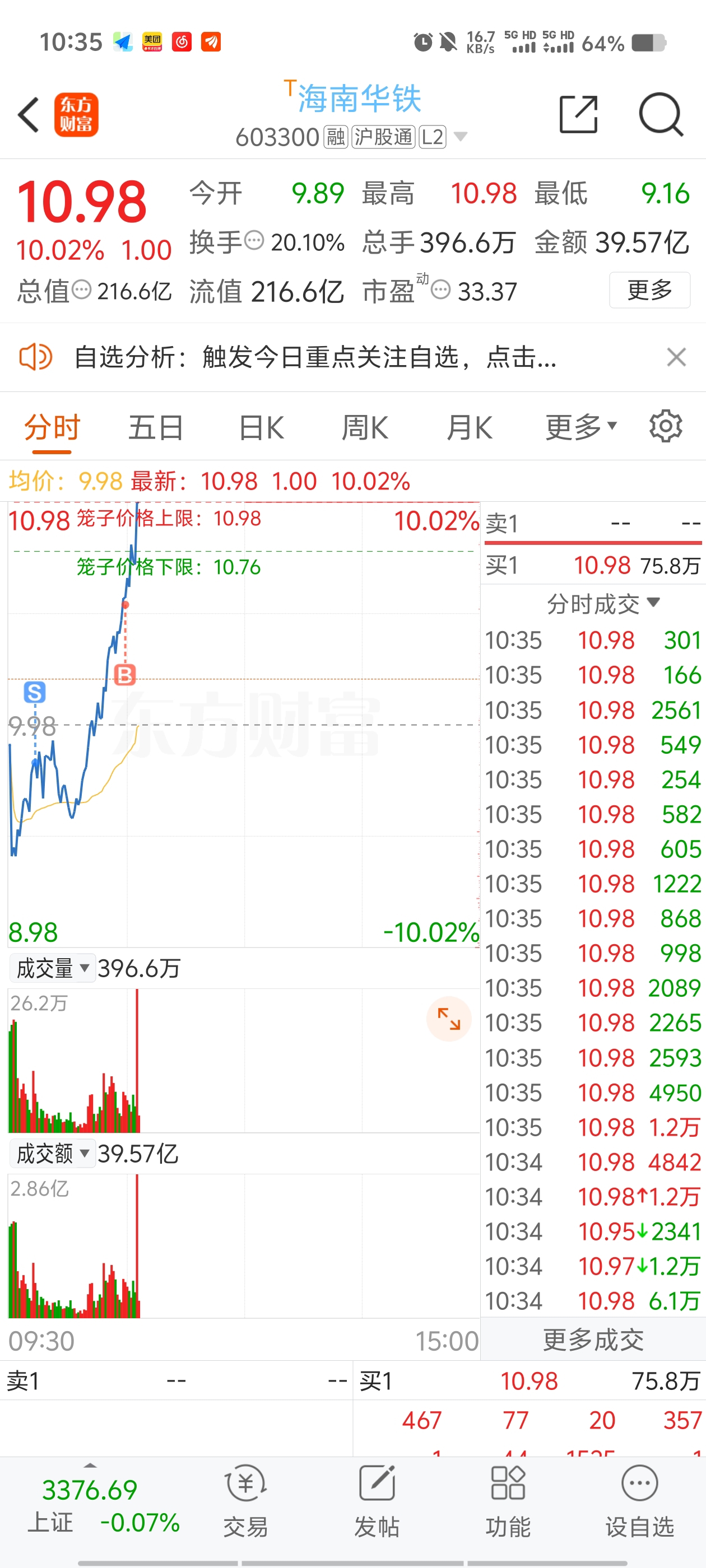 $海南华铁(SH603300)$ md,sb战法,看见主力流出那么多,没想到还能封