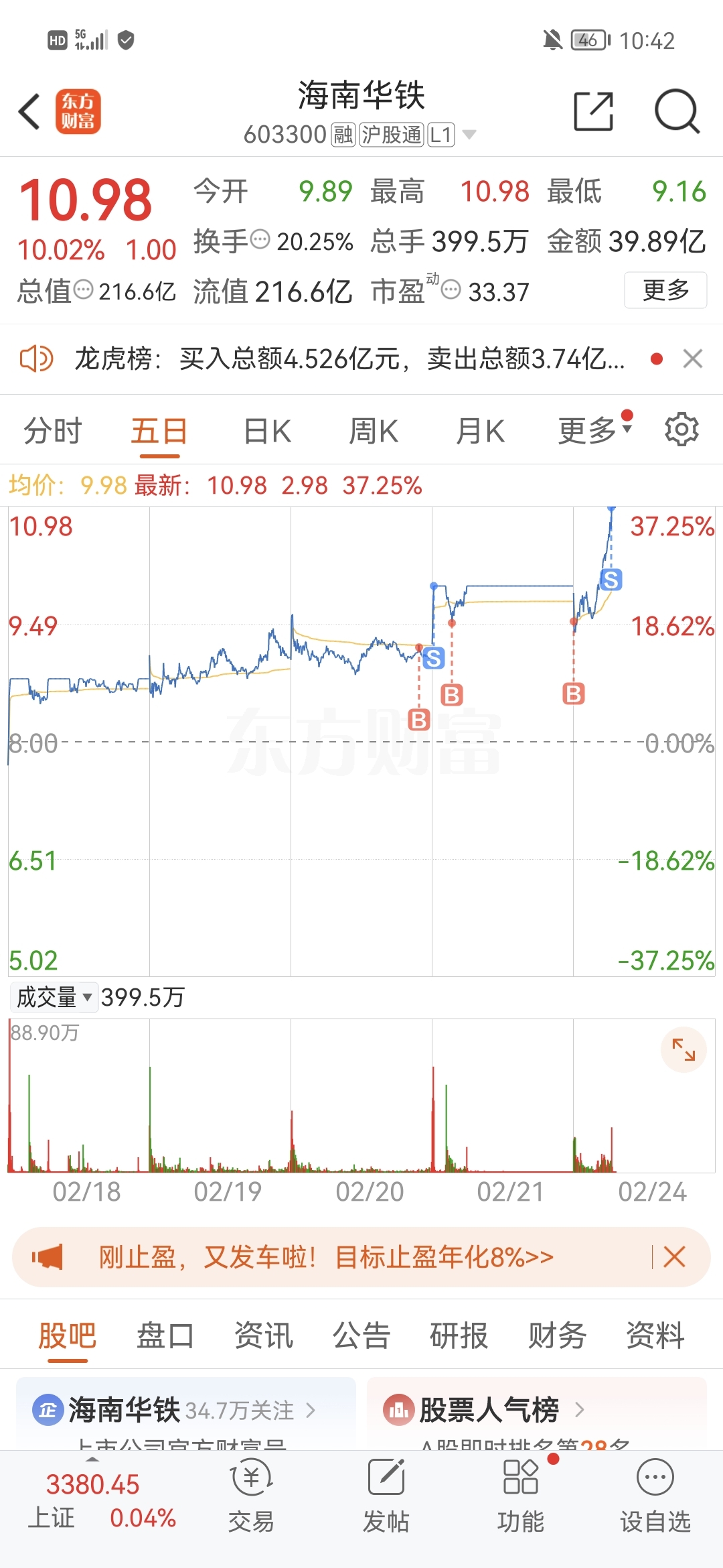$海南华铁(SH603300)$ 不知道是不是这样玩