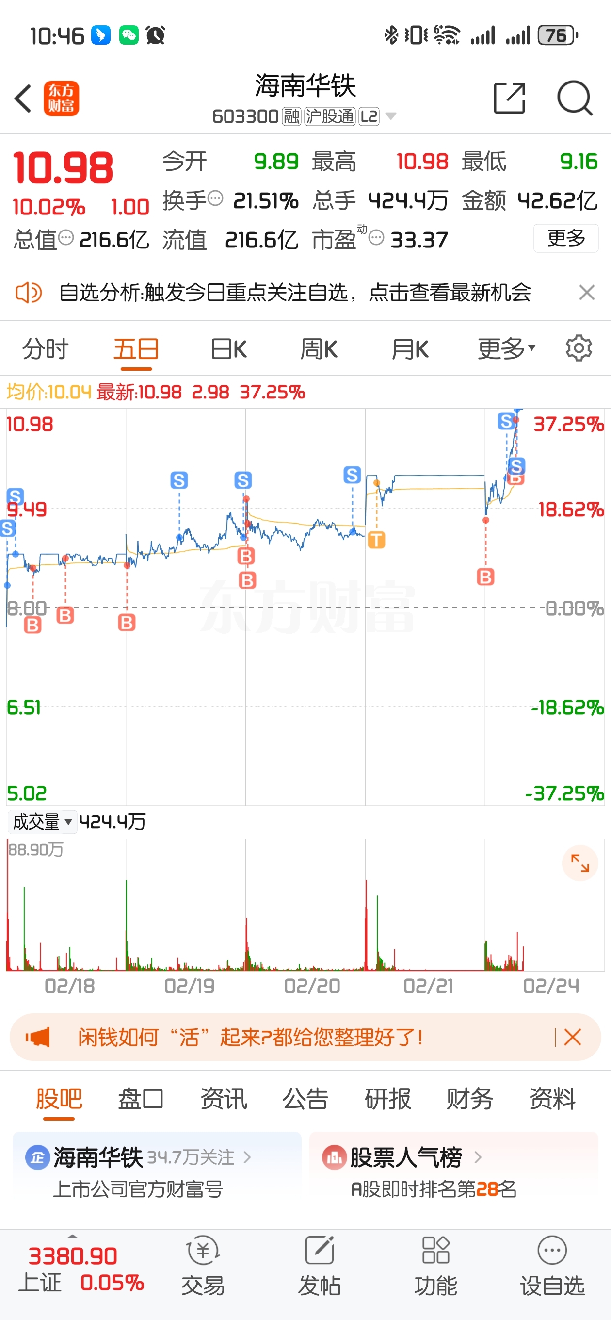 $海南华铁(SH603300)$ 老铁强啊