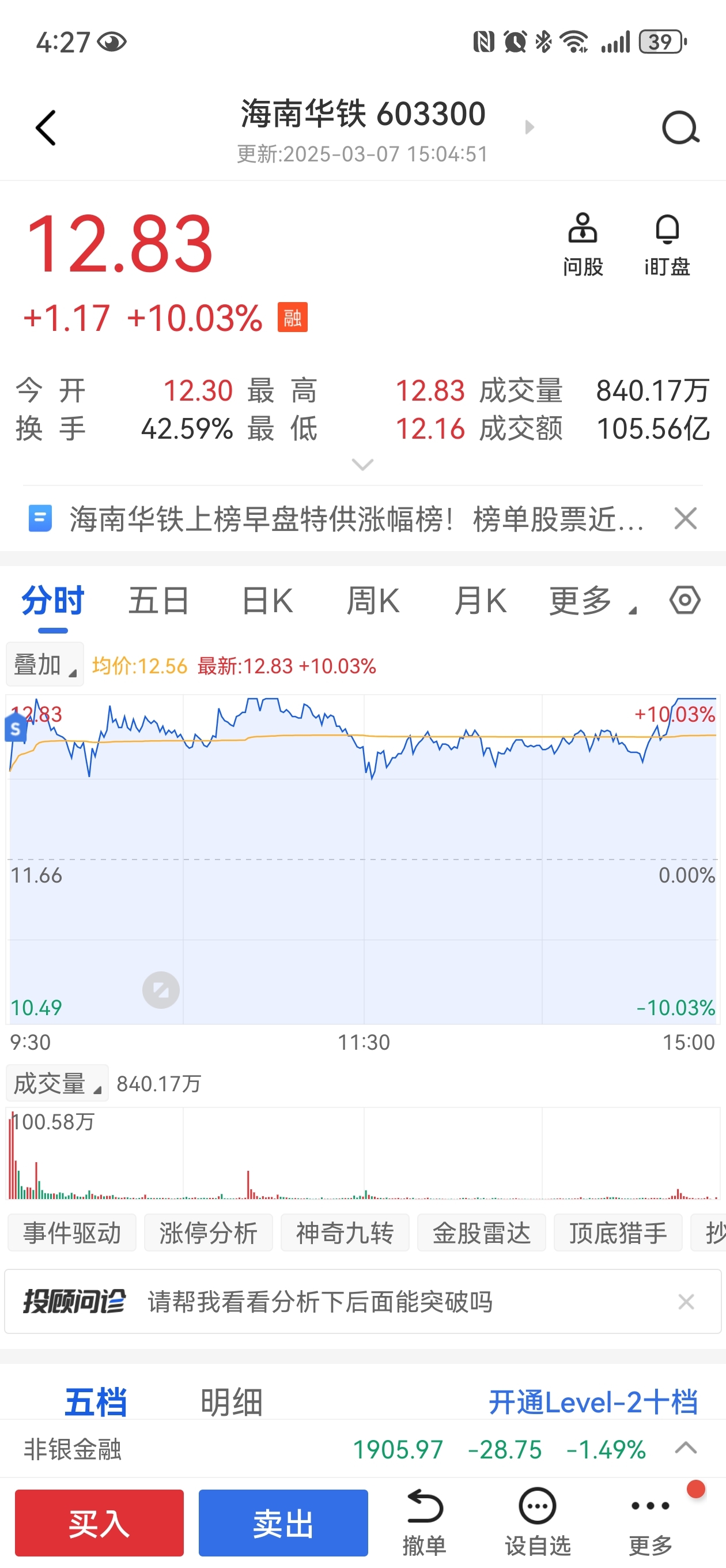 比涨停卖低了几分钱,不过也算满意了,周末愉快