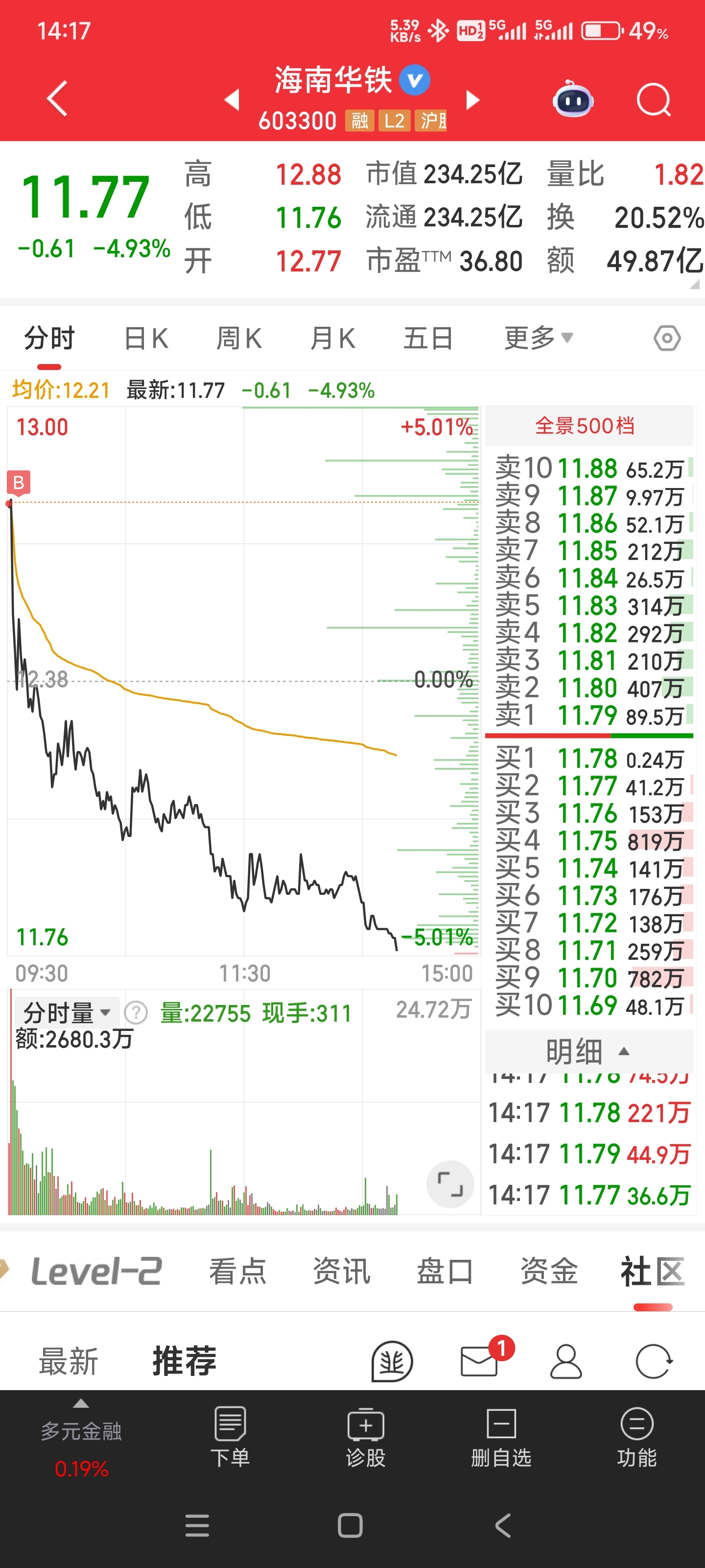 $海南华铁(SH603300)$ 吃一个天地板啊。
