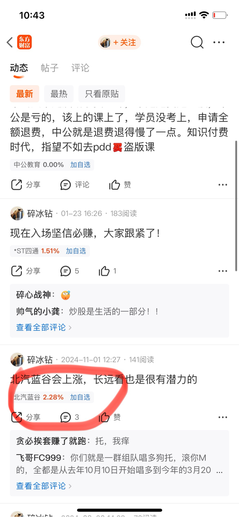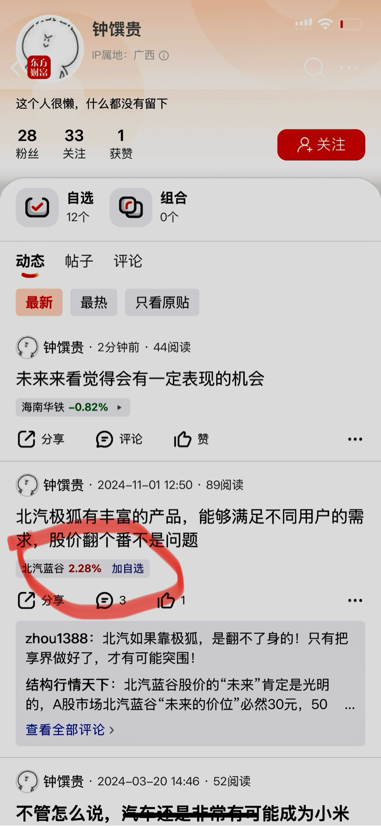 $海南华铁(SH603300)$ 快来看水军,昨天就发现了,今天实在忍不住发出来给大家看看。好巧不巧,这些说没事的账号全部都共同关注了“北汽蓝谷”,还有这么巧的事?说明什么,说明“北汽蓝谷”也买了水军。所以大家一定要注意甄别,而当水军都说没事的时候,就更需要注意了。我也有持仓,我也希望吧里有好的氛围,但我实在看不下去散户再继续被骗了
