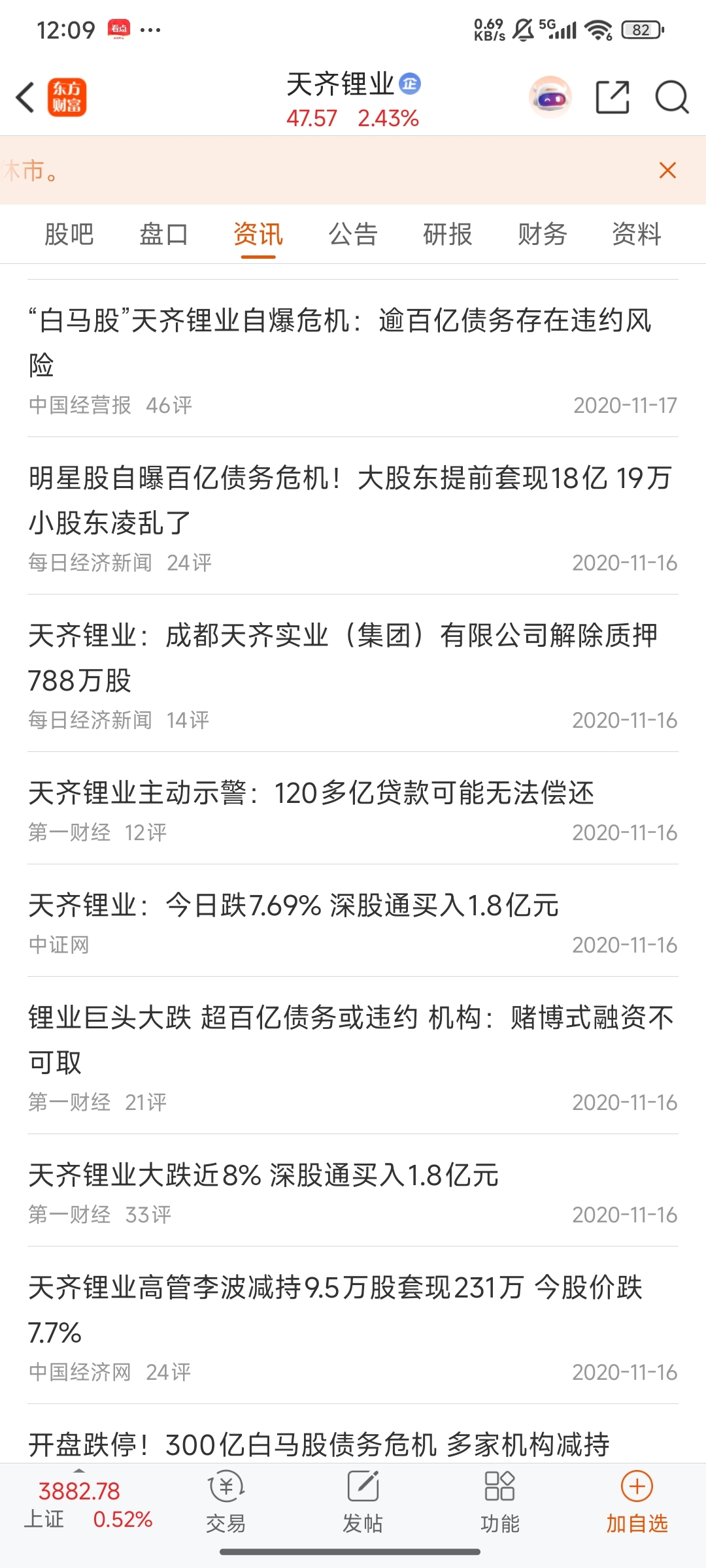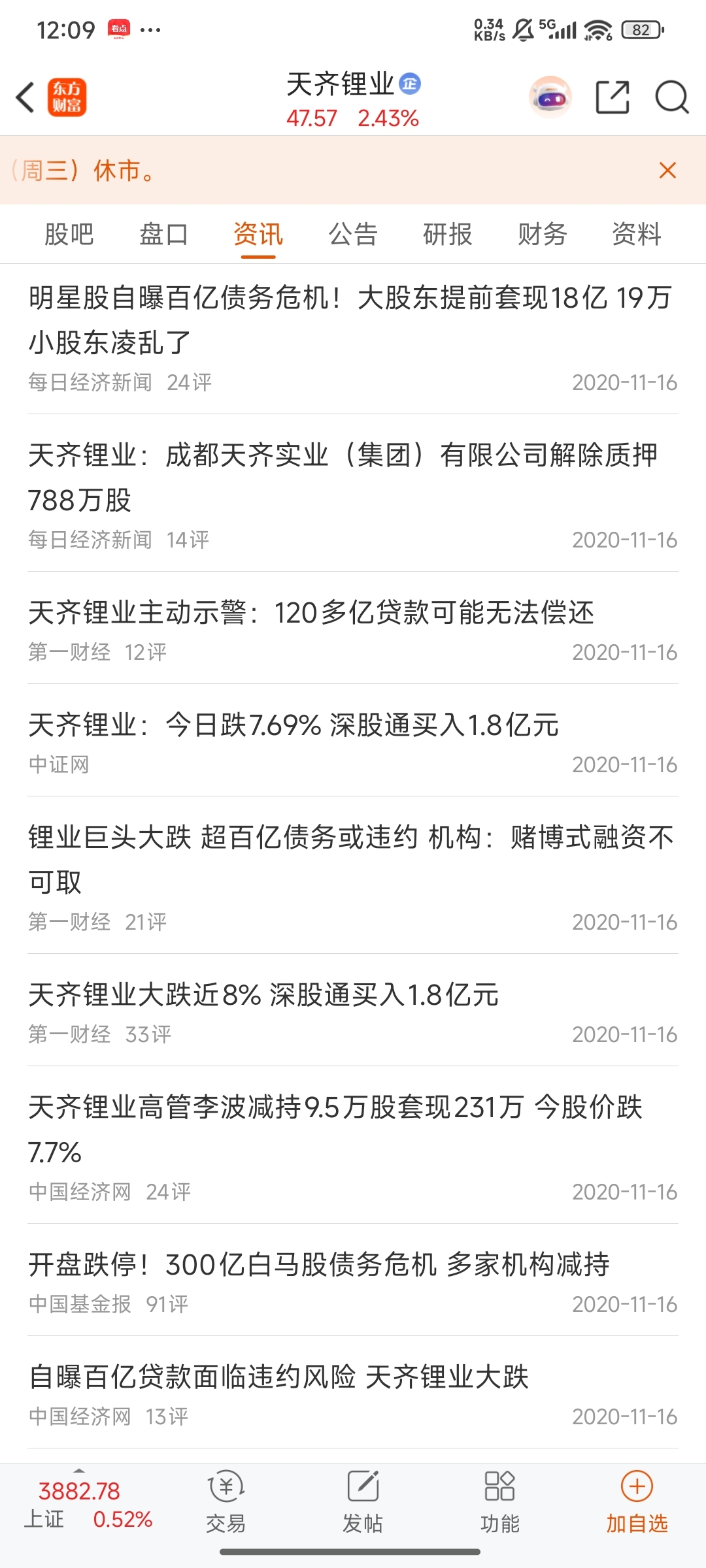 我记得2020年11月份的时候,天齐锂业出个大利空,一天十几家资讯公司的小作文满